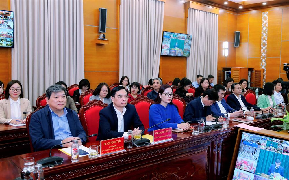 Cùng tham dự có các đồng chí Phó Giám đốc Học viện Chính trị quốc gia Hồ Chí Minh: PGS,TS Nguyễn Duy Bắc, PGS,TS Hoàng Phúc Lâm, PGS,TS Dương Trung Ý; đại diện lãnh đạo các đơn vị trực thuộc Học viện và toàn thể các đồng chí lãnh đạo các xã, phường, đặc khu trên cả nước.