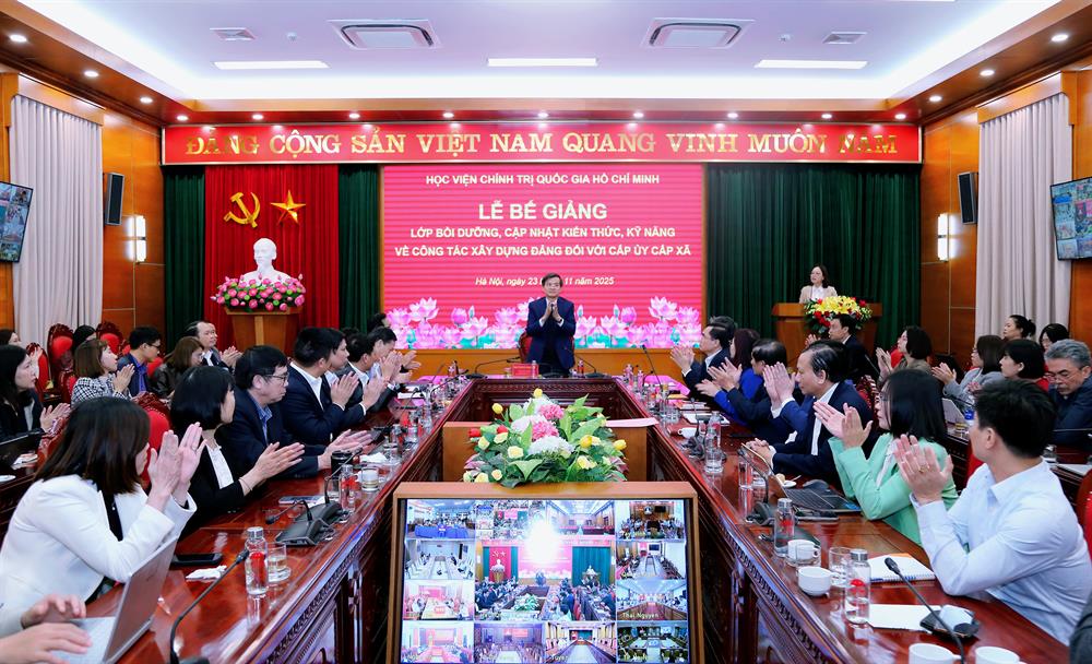 Thực hiện kết luận của Bộ Chính trị, Ban Bí thư về tăng cường lãnh đạo, chỉ đạo công tác xây dựng Đảng đối với với cấp ủy cấp xã, sáng ngày 22/11/2025, Học viện Chính trị quốc gia Hồ Chí Minh tổ chức khai giảng Lớp bồi dưỡng cập nhật kiến thức, kỹ năng về công tác xây dựng Đảng đối với cấp ủy cấp xã. Đây là lớp bồi dưỡng thứ ba Học viện tổ chức ngay sau khi mô hình chính quyền địa phương 2 cấp đi vào hoạt động.