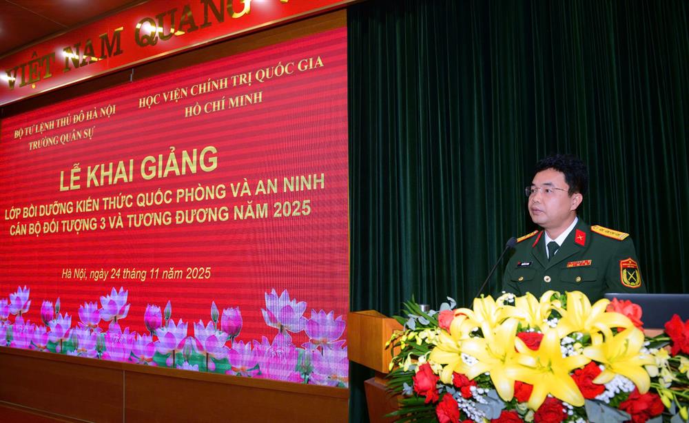 Phát biểu tại Lễ khai giảng, Đại tá Nguyễn Lê Nam, Phó Hiệu trưởng Trường Quân sự Bộ Tư lệnh Thủ đô Hà Nội nhấn mạnh, bối cảnh toàn cầu hóa và hội nhập quốc tế ngày càng sâu rộng, cùng với những diễn biến phức tạp của tình hình thế giới và khu vực đang đặt ra nhiều yêu cầu mới đối với nhiệm vụ tăng cường quốc phòng, an ninh. Đặc biệt, sau hơn bốn tháng triển khai mô hình chính quyền địa phương hai cấp, việc củng cố, nâng cao năng lực quốc phòng – an ninh càng có ý nghĩa quan trọng, góp phần xây dựng “thế trận lòng dân” vững chắc, tạo nền tảng cho sự ổn định và phát triển bền vững của Thủ đô.