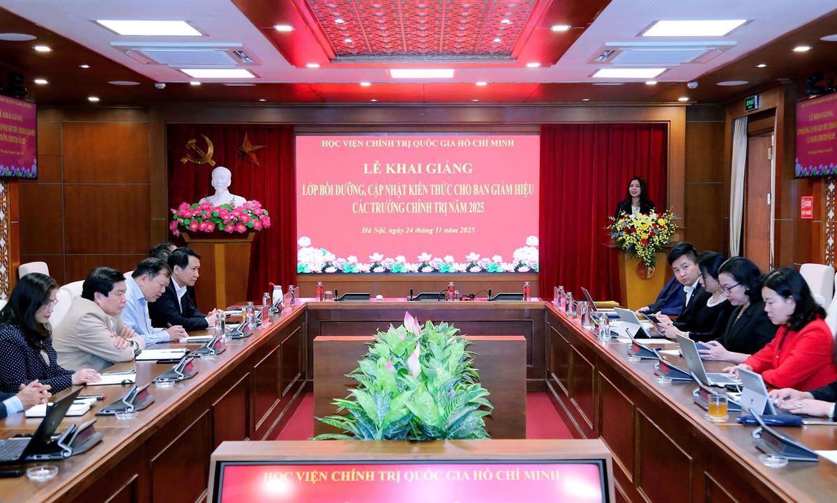 Lớp bồi dưỡng, cập nhật kiến thức cho Ban Giám hiệu các trường chính trị diễn ra từ ngày 24-28/11/2025, gồm 4 chuyên đề nghiên cứu, trao đổi, thảo luận tại Học viện Chính trị quốc gia Hồ Chí Minh và 01 chuyên đề nghiên cứu thực tế tại tỉnh Ninh Bình.