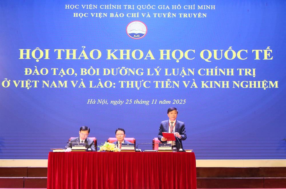 Chiều ngày 23/11/2025, tại Hà Nội, Học viện Chính trị quốc gia Hồ Chí Minh tổ chức bế giảng Lớp bồi dưỡng cập nhật kiến thức, kỹ năng về công tác xây dựng Đảng đối với cấp ủy cấp xã. PGS,TS Đoàn Minh Huấn, Ủy viên Trung ương Đảng, Phó Giám đốc thường trực Học viện Chính trị quốc gia Hồ Chí Minh dự và phát biểu bế giảng.