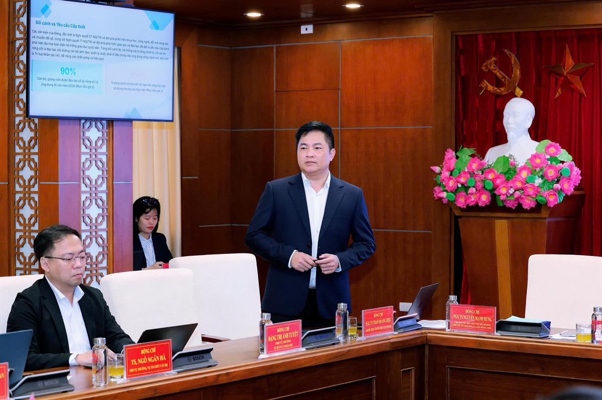 PGS,TS Trần Quang Diệu, Giám đốc Trung tâm Công nghệ và Chuyển đổi số, Học viện Chính trị quốc gia Hồ Chí Minh phát biểu tại Hội thảo