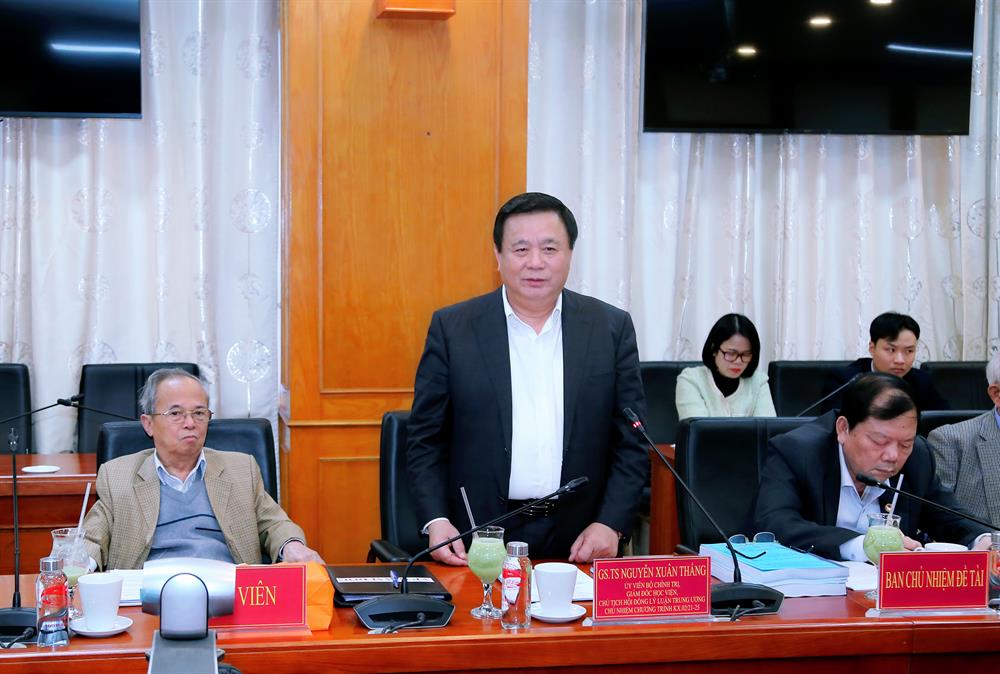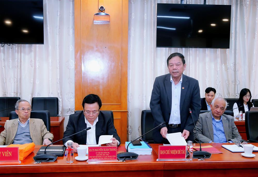 Phát biểu kết luận hội nghị, GS,TS Tạ Ngọc Tấn, nguyên Ủy viên Trung ương Đảng, nguyên Giám đốc Học viện Chính trị quốc gia Hồ Chí Minh, Phó Chủ tịch thường trực Hội đồng Lý luận Trung ương đánh giá cao tinh thần làm việc nghiêm túc, khoa học của Ban Chủ nhiệm đề tài; ghi nhận nỗ lực tập thể các nhà khoa học trong việc triển khai công trình có quy mô lớn, nội dung phong phú, hàm lượng lý luận sâu sắc.Hội đồng khẳng định đề tài có ý nghĩa quan trọng cả về lý luận và thực tiễn, góp phần cung cấp luận cứ khoa học phục vụ công tác tổng kết lý luận, hoàn thiện đường lối của Đảng trong thời kỳ mới.