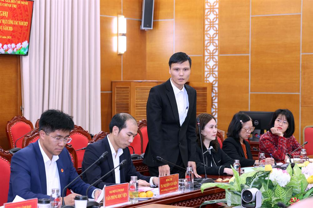 Cùng chủ trì có TS Nguyễn Thị Thanh Nhàn, Vụ trưởng Vụ Các trường chính trị. Dự hội nghị có đại diện lãnh đạo các đơn vị chức năng thuộc Học viện: Ban Công tác Đảng - Đoàn thể; Vụ Tổ chức cán bộ, Ban Thanh tra Học viện, Văn phòng Học viện, Vụ Quản lý khoa học, Vụ Kế hoạch - Tài chính, Trung tâm Công nghệ và Chuyển đổi số; cùng toàn thể cán bộ, viên chức, người lao động đơn vị.