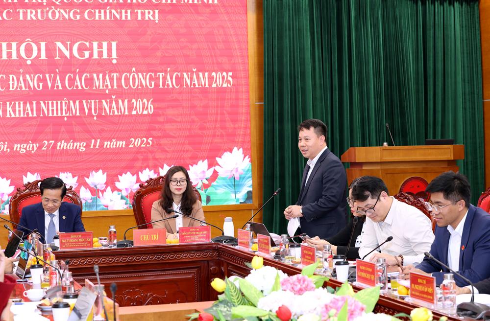 Chiều 27/11/2025 tại Học viện Chính trị quốc gia Hồ Chí Minh, Vụ Các trường chính trị tổ chức Hội nghị tổng kết công tác đảng và các mặt công tác năm 2025, triển khai nhiệm vụ năm 2026. PGS,TS Hoàng Phúc Lâm, Phó Bí thư Đảng ủy, Phó Giám đốc Học viện dự, chủ trì và chỉ đạo hội nghị.