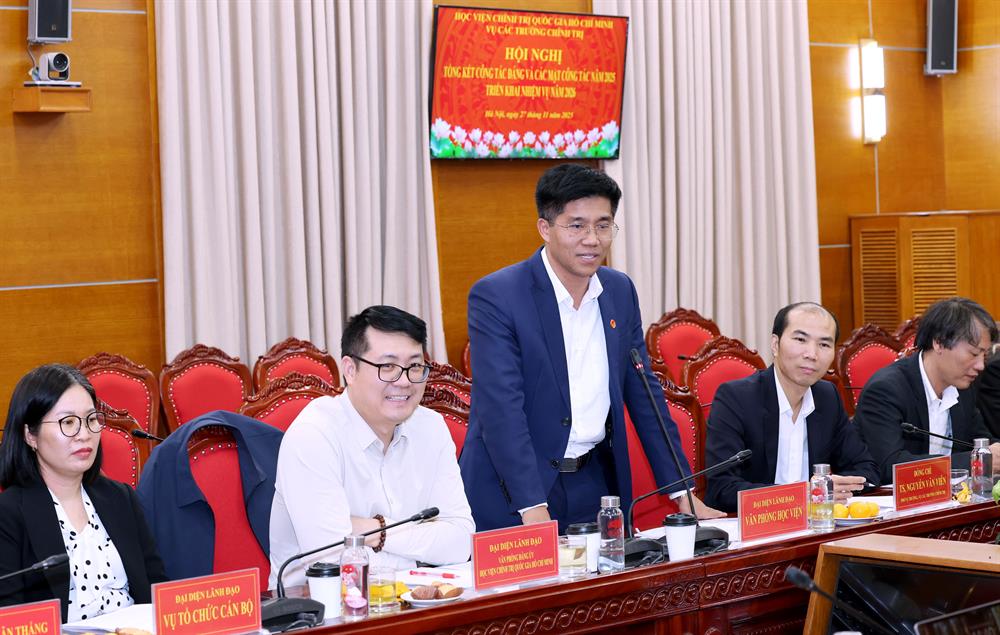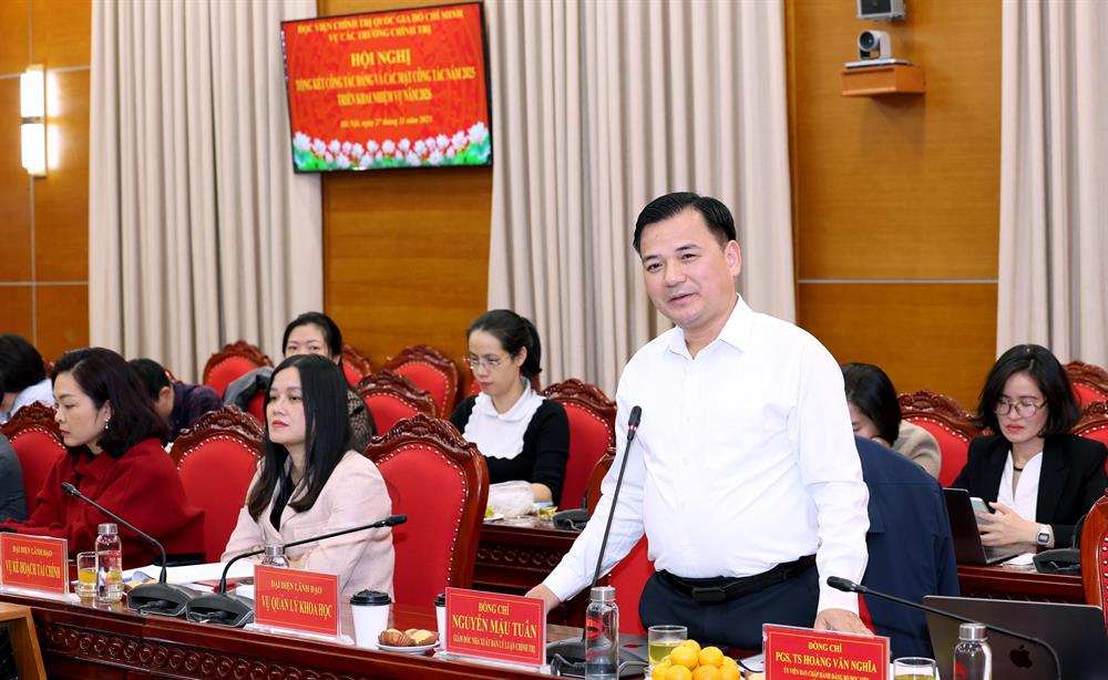 Trên cơ sở các nội dung và ý kiến tham góp trình bày, hội nghị đã lắng nghe ý kiến phát biểu chỉ đạo của PGS,TS Hoàng Phúc Lâm, Phó Bí thư Đảng ủy, Phó Giám đốc Học viện. đối với các mặt hoạt động của Vụ các trường Chính trị trong năm 2026; lắng nghe các ý kiến trao đổi, thảo luận của đại diện lãnh đạo các đơn vị chức năng.