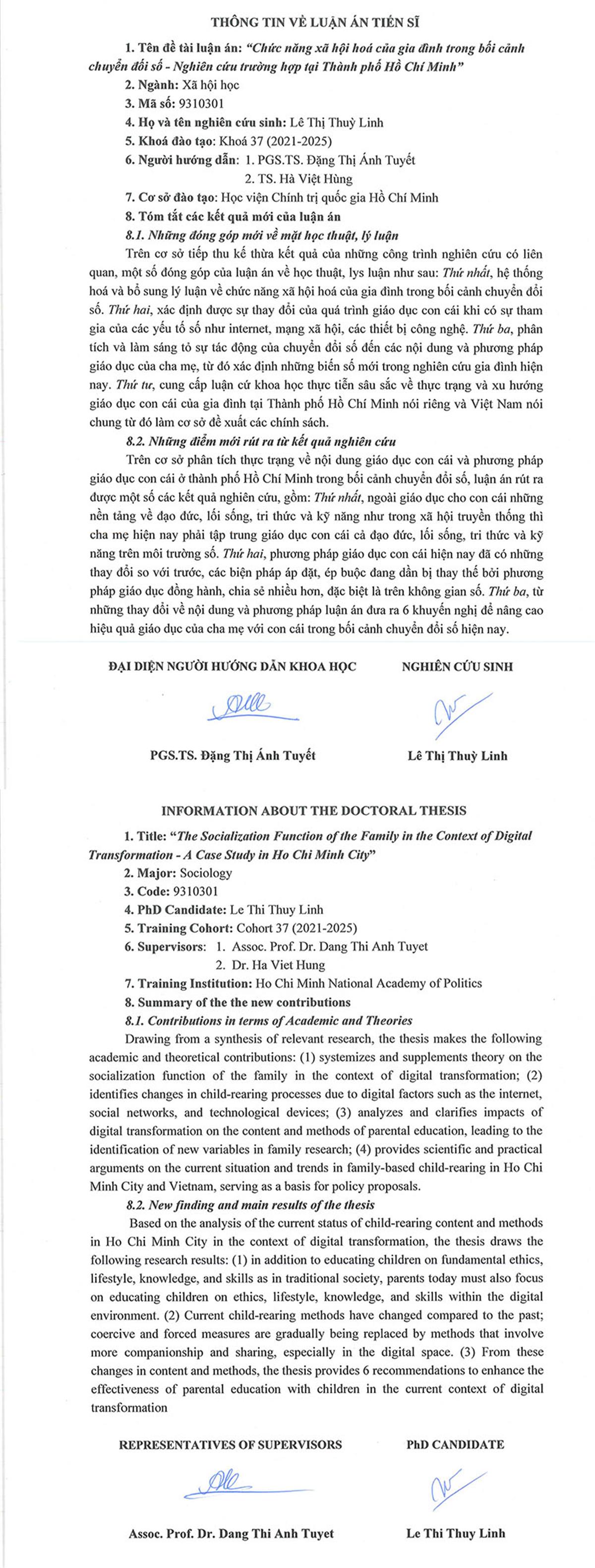 Nghiên cứu sinh Lê Thị Thùy Linh tóm tắt những kết luận mới của luận án