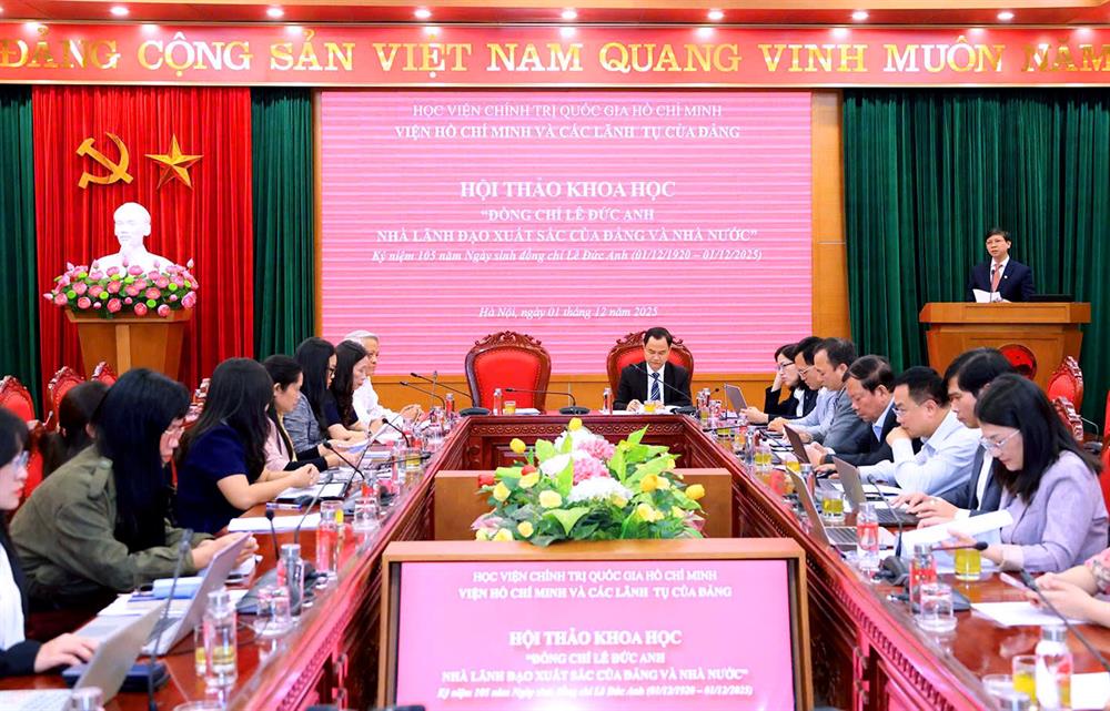 Phát biểu khai mạc và đề dẫn hội thảo, PGS,TS Lý Việt Quang, Viện trưởng Viện Hồ Chí Minh và các lãnh tụ của Đảng nhấn mạnh ý nghĩa khoa học và thực tiễn của hội thảo. Đồng chí cho biết hội thảo được tổ chức nhằm nghiên cứu, phân tích sâu sắc cuộc đời, sự nghiệp cách mạng của đồng chí Lê Đức Anh, người cộng sản kiên trung, nhà chính trị và quân sự tài năng, người học trò xuất sắc của Chủ tịch Hồ Chí Minh. Đồng chí Lê Đức Anh đã có hơn 80 năm hoạt động cách mạng liên tục, đảm nhiệm nhiều cuơng vị quan trọng của Đảng, Nhà nước và Quân đội, để lại nhiều bài học thực tiễn quý báu cho sự nghiệp xây dựng và bảo vệ Tổ quốc trong giai đoạn hiện nay.