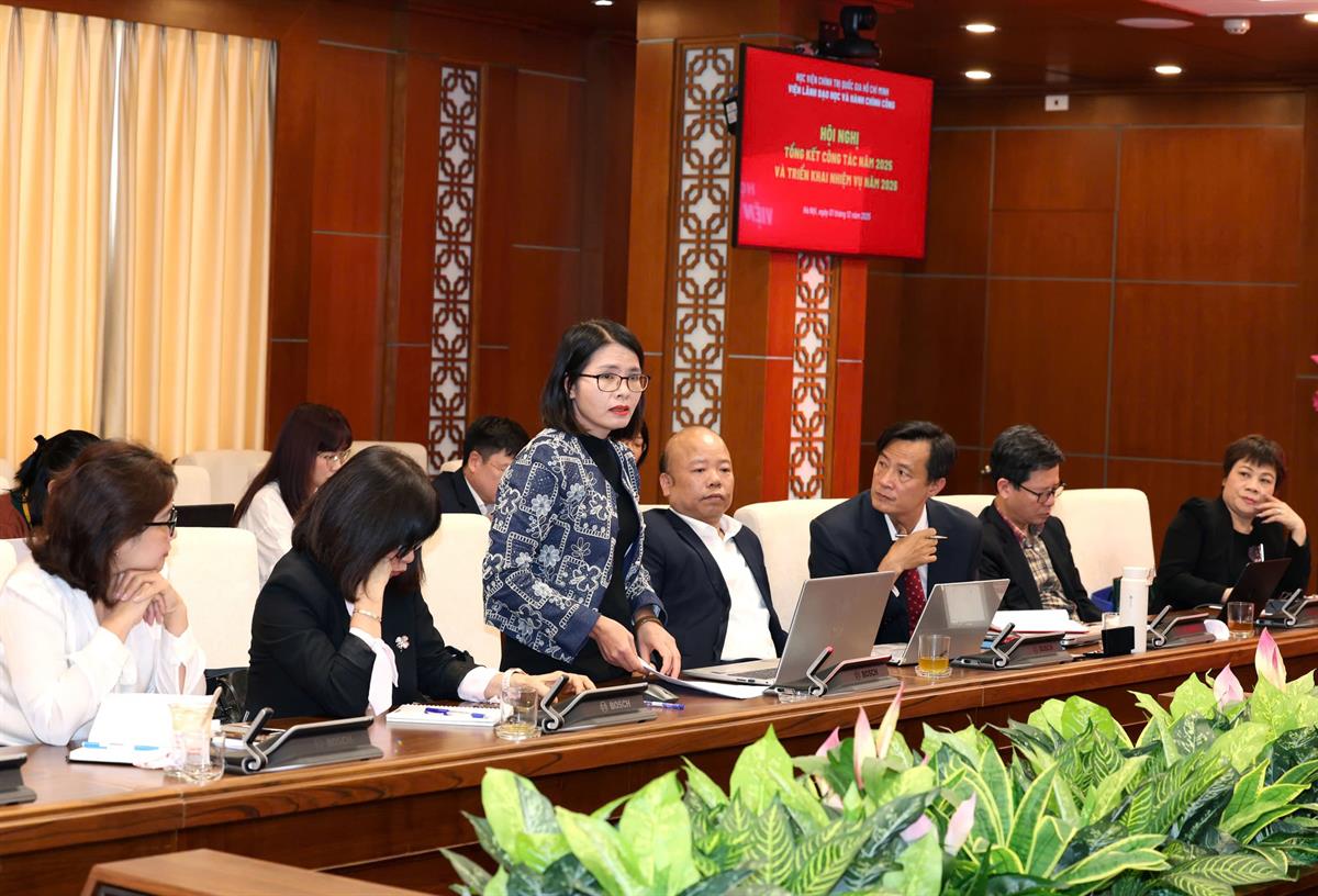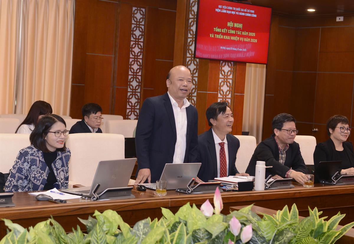 Tại hội nghị, các cán bộ, giảng viên của Viện đã tích cực đóng góp ý kiến vào dự thảo báo cáo tổng kết và các hoạt động của đơn vị, đồng thời đề xuất nhiều kiến nghị nhằm nâng cao chất lượng công tác trong thời gian tới. Hội nghị cũng ghi nhận các ý kiến chia sẻ, trao đổi, tham góp từ đại diện lãnh đạo các đơn vị chức năng, qua đó giúp Viện Lãnh đạo học và Hành chính công tiếp tục hoàn thiện phương hướng, xác định nhiệm vụ trọng tâm năm 2026, phát huy những kết quả đạt được, khắc phục những hạn chế và phấn đấu hoàn thành tốt các nhiệm vụ được giao.