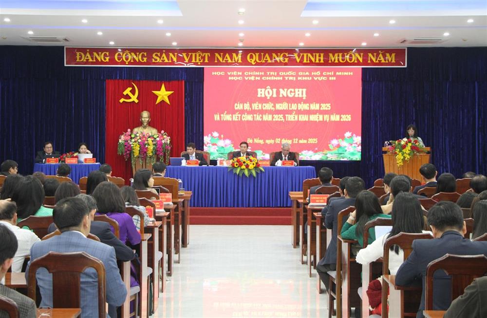 Tự hào về truyền thống vẻ vang, khẳng định bản sắc văn hóa trường Đảng và thể hiện tầm nhìn chiến lược trong hoạch định đường lối phát triển, người đứng đầu Học viện Chính trị khu vực III khẳng định: Năm 2026 là năm đầu tiên Đảng bộ Học viện lãnh đạo triển khai thực hiện Nghị quyết Đại hội XIV của Đảng, Nghị quyết Đại hội Đảng bộ Học viện lần thứ XV... Vì vậy, Đảng ủy, Ban Giám đốc sẽ lãnh đạo, chỉ đạo phát huy sức mạnh đoàn kết, tăng cường kỷ luật, kỷ cương, đổi mới đồng bộ, toàn diện nhằm thực hiện thắng lợi các nhiệm vụ đề ra: Tiếp tục đổi mới mạnh mẽ nội dung, phương thức lãnh đạo, chỉ đạo của Đảng ủy, Ban Thường vụ Đảng ủy và chi ủy, chi bộ trên các mặt công tác, trong đó tập trung vào những nhiệm vụ trọng tâm năm 2026, bảo đảm thực hiện thắng lợi nhiệm vụ năm học 2026-2027. Xây dựng Học viện thực sự gương mẫu, đoàn kết, trong sạch, vững mạnh trên các mặt chính trị, tư tưởng, đạo đức, tổ chức, cán bộ; tập trung rà soát, bổ sung quy chế làm việc, chương trình công tác hằng năm; chỉ đạo thực hiện có hiệu quả các Nghị quyết chuyên đề, nhất là Nghị quyết số 52-NQ/ĐU ngày 22/4/2025 của Ban Chấp hành Đảng bộ Học viện Chính trị quốc gia Hồ Chí Minh về phát triển Học viện Chính trị khu vực III đến năm 2030, tầm nhìn đến năm 2045; tập trung triển khai thực hiện đồng bộ, có hiệu quả Nghị quyết chuyên đề số 01-NQ/ĐU ngày 22/9/2025 của Ban Chấp hành Đảng bộ Học việnIII về đẩy mạnh ứng dụng công nghệ thông tin và chuyển đổi số tại Học viện Chính trị khu vực III đáp ứng yêu cầu, nhiệm vụ mới; đồng thời tổ chức sơ kết thực hiện các Nghị quyết của Đảng ủy Học viện.