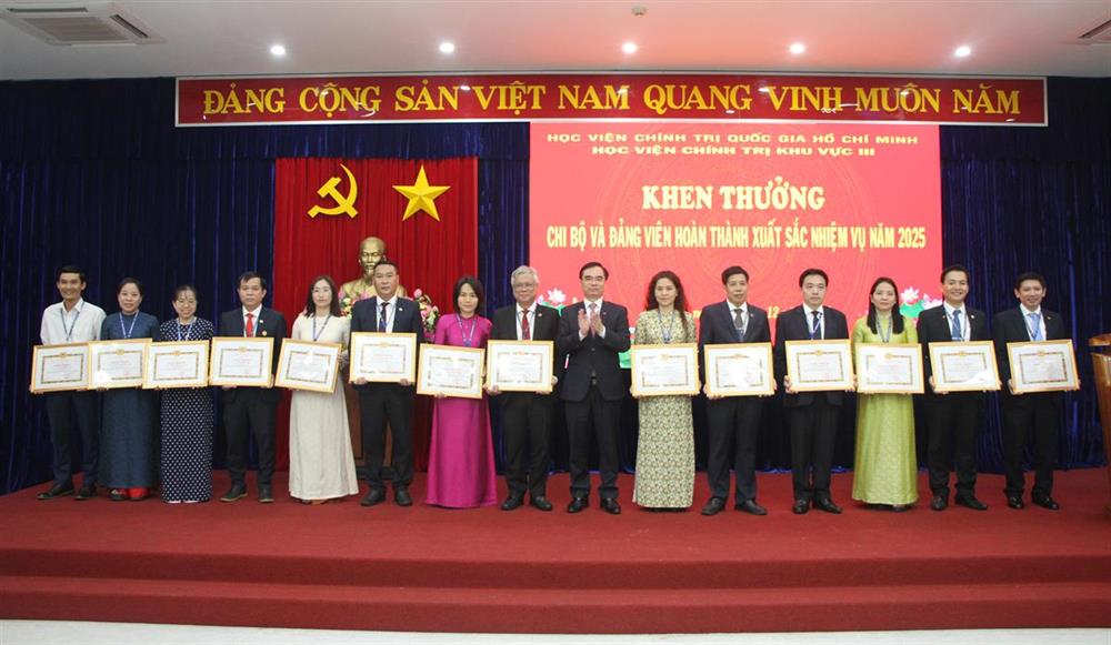 Ghi nhận những nỗ lực của các tập thể, cá nhân đã không ngừng phấn đấu, giữ vững kỷ cương, tinh thần trách nhiệm và ý chí vượt khó trong năm công tác 2025, Học viện đã trao tặng danh hiệu thi đua cơ sở 2025, khen thưởng các chi bộ, đảng viên hoàn thành xuất sắc nhiệm vụ năm 2025. Những thành tích được vinh danh không chỉ phản ánh kết quả lao động bền bỉ của từng tập thể, từng cán bộ, đảng viên mà còn góp phần lan tỏa tinh thần thi đua, tạo động lực mới để toàn Học viện tiếp tục phát huy truyền thống, nâng cao chất lượng công tác và hoàn thành tốt hơn nữa nhiệm vụ chính trị trong thời gian tới.