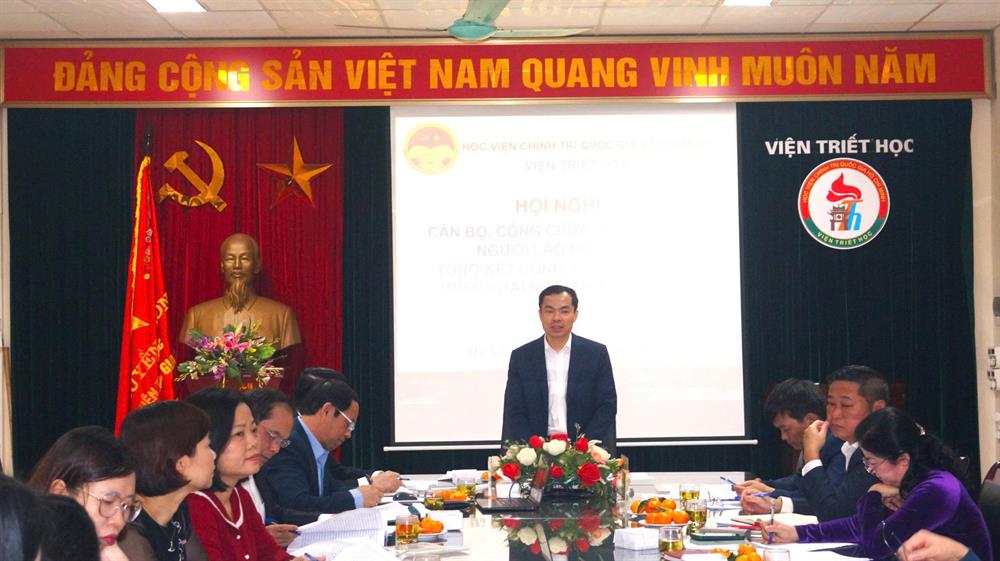 Thực hiện Kế hoạch số 1253 KH/HVCTQG ngày 12 tháng 11 năm 2025 của Giám đốc Học viện Chính trị quốc gia Hồ Chí Minh, ngày 30 tháng 11 năm 2025, Viện Triết học đã tổ chức Hội nghị cán bộ, công chức, viên chức, người lao động năm 2025 và Hội nghị tổng kết công tác năm 2025, triển khai nhiệm vụ năm 2026. PGS TS Nguyễn Mạnh Hùng, Phó Giám đốc Học viện, Phó Chủ tịch Hội đồng Lý luận Trung ương tới dự và chỉ đạo Hội nghị. Tham dự Hội nghị còn có các đồng chí đại diện lãnh đạo một số đơn vị chức năng của Học viện cùng đông đủ cán bộ, viên chức Viện Triết học.