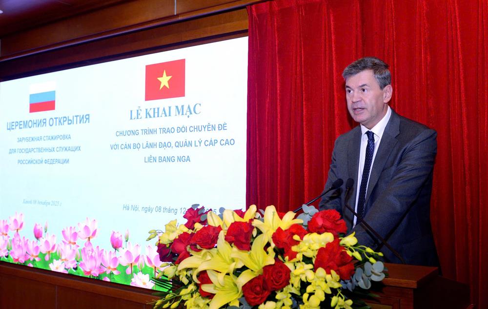 Giám đốc Học viện Hành chính công và Kinh tế quốc dân trực thuộc Tổng thống Liên bang Nga Alexey Komissarov nhắc lại sự kiện Tổng Bí thư Tô Lâm thăm Học viện này vào tháng 5/2025 và nhận danh hiệu Giáo sư danh dự, đánh dấu tầm cao mới trong quan hệ hợp tác giữa nước, hai Học viện. Ông Komissarov nhấn mạnh tầm quan trọng của việc hợp tác đánh giá năng lực công chức và đề xuất cải thiện hệ thống hành chính công, đặc biệt trong bối cảnh Việt Nam đang đẩy mạnh cải cách hành chính và chuẩn bị cho Đại hội Đảng sắp tới.
