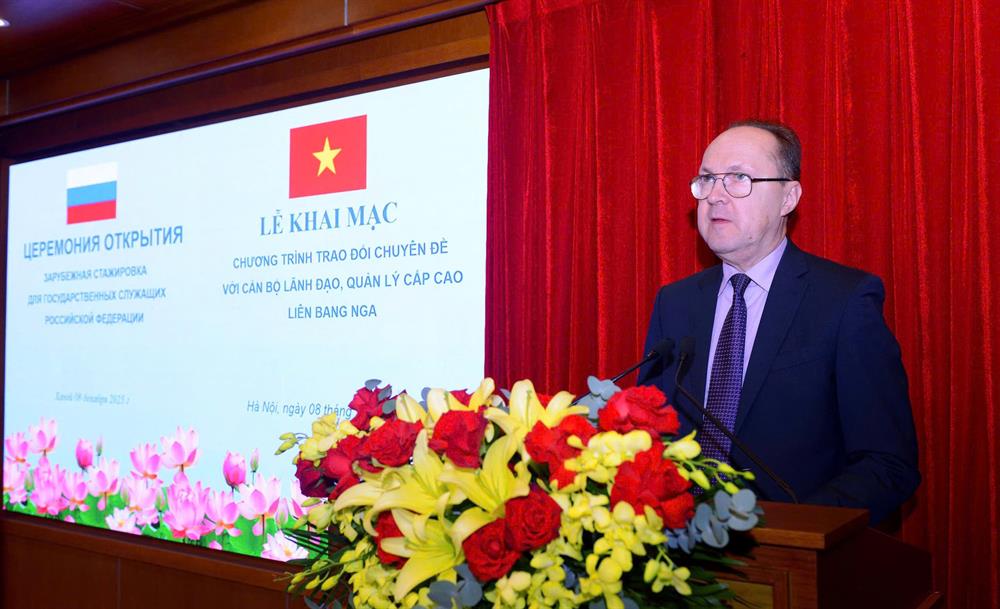 Phát biểu tại Lễ khai mạc, ông Komissarov Alexey, Giám đốc Học viện Hành chính công và Kinh tế quốc dân trực thuộc Tổng thống Liên bang Nga trân trọng cảm ơn Học viện Chính trị quốc gia Hồ Chí Minh đã dành cho đoàn cán bộ của Liên bang Nga sự đón tiếp trọng thị, chu đáo và nồng nhiệt. Ông nhấn mạnh, việc tổ chức chương trình nghiên cứu khảo sát, trao đổi chuyên đề lần này thể hiện sinh động mối quan hệ hữu nghị truyền thống và đối tác chiến lược toàn diện giữa Liên bang Nga và Việt Nam đang ngày càng được củng cố và phát triển mạnh mẽ.