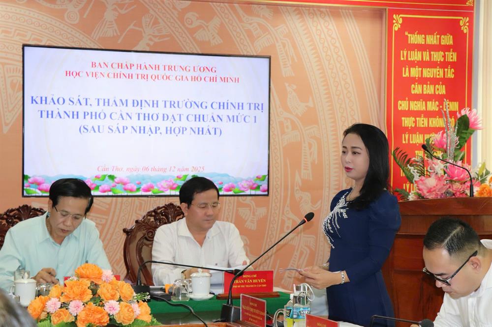 Các thành viên đoàn công tác đánh giá rất cao tinh thần trách nhiệm, sự chủ động, đoàn kết và nỗ lực vượt khó của tập thể Trường Chính trị TP Cần Thơ trong suốt thời gian qua. Trường đã tổ chức thực hiện một cách bài bản, khoa học, quyết liệt, giữ vững ổn định nội bộ, đảm bảo không gián đoạn nhiệm vụ đào tạo, bồi dưỡng và duy trì chất lượng chung của từng hoạt động. Đặc biệt, Trường đã triển khai đầy đủ và nghiêm túc quy trình rà soát, tự đánh giá, thẩm định nội bộ; tham mưu Ban Thường vụ Thành ủy hoàn thiện hồ sơ trình Học viện xem xét, công nhận đạt chuẩn mức 1.