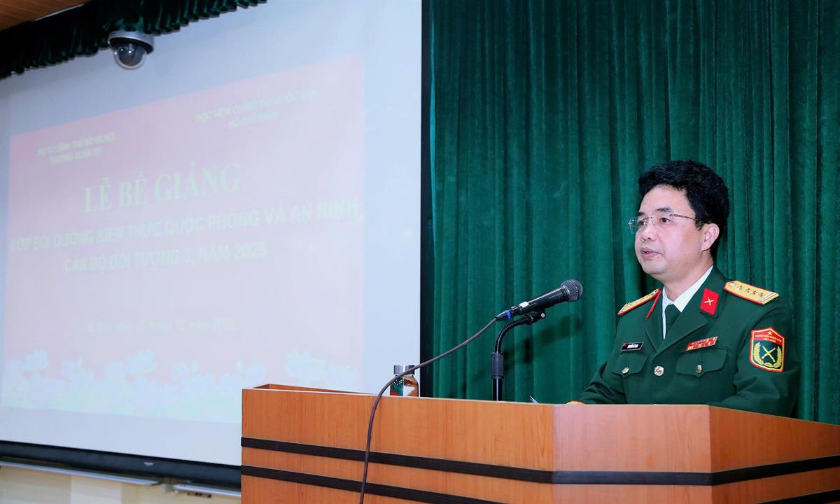 Đánh giá cao chất lượng của lớp bồi dưỡng kiến thức Quốc phòng và An ninh đối tượng 3 tại Học viện, phát biểu bế giảng Đại tá Nguyễn Lê Nam khẳng định, sự thành công của khóa học là kết quả của sự chỉ đạo sát sao của Đảng ủy, Ban Giám đốc Học viện cùng với sự phối hợp chặt chẽ giữa các đơn vị chuyên môn và Trường Quân sự Bộ Tư lệnh Thủ đô Hà Nội trong công tác chuẩn bị, xây dựng kế hoạch và lựa chọn đội ngũ giảng viên.