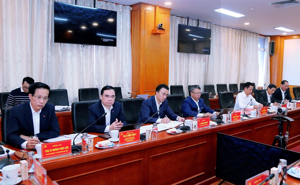 GS,TS Nguyễn Xuân Thắng - Ủy viên Bộ Chính trị, Giám đốc Học viện, Chủ tịch Hội đồng Lý luận Trung ương, phụ trách Đảng bộ Học viện và PGS,TS Đoàn Minh Huấn - Ủy viên Ban Chấp hành Trung ương Đảng, Phó Bí thư thường trực Đảng ủy, Phó Giám đốc thường trực Học viện đồng chủ trì.