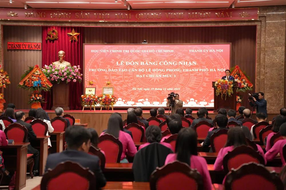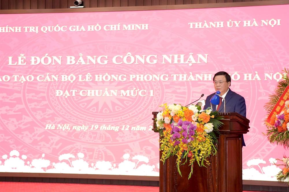 Phát biểu tại buổi lễ, GS,TS Nguyễn Xuân Thắng, Ủy viên Bộ Chính trị, Giám đốc Học viện Chính trị quốc gia Hồ Chí Minh, Chủ tịch Hội đồng Lý luận Trung ương đánh giá cao vai trò lãnh đạo, chỉ đạo sâu sát của Ban Thường vụ Thành ủy, sự nỗ lực của đội ngũ cán bộ, giảng viên, viên chức, người lao động Nhà trường trong quá trình đầu tư nâng cao chất lượng Trường Đào tạo cán bộ Lê Hồng Phong đạt chuẩn mức 1.