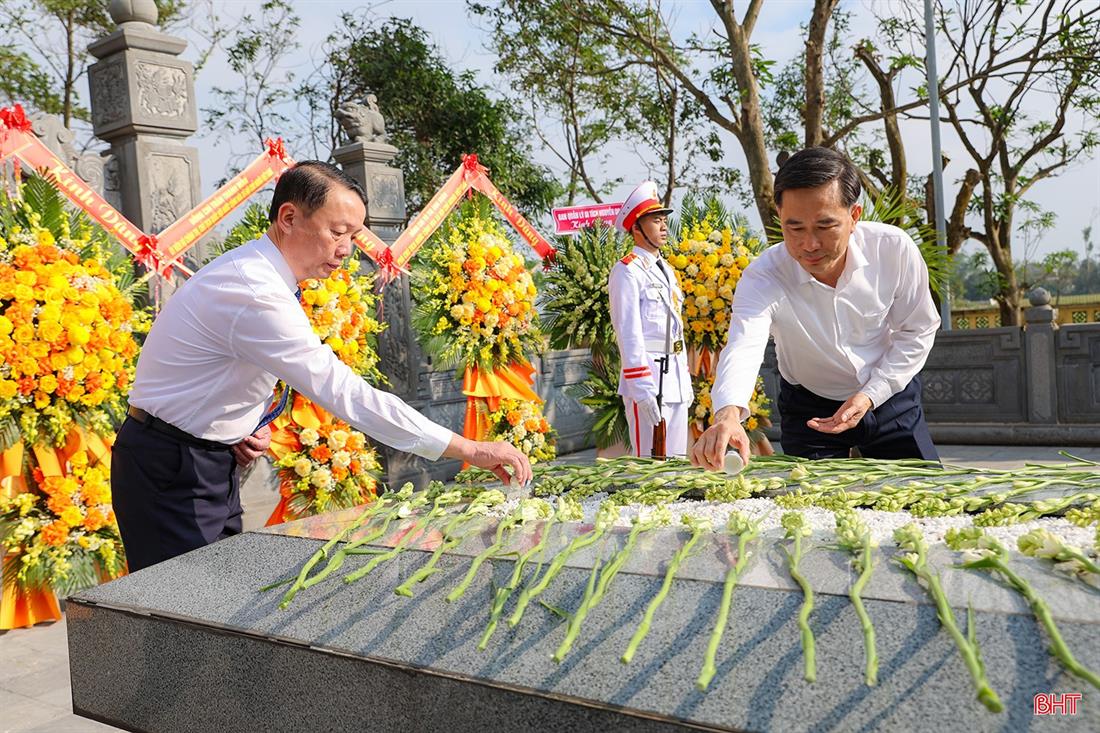 Nhân kỷ niệm 260 năm Ngày sinh Đại thi hào Nguyễn Du, chiều 20/12, đồng chí Nguyễn Xuân Thắng - Ủy viên Bộ Chính trị, Giám đốc Học viện Chính trị quốc gia Hồ Chí Minh, Chủ tịch Hội đồng Lý luận Trung ương cùng đoàn công tác đã tới dâng hương tại phần mộ và Khu lưu niệm Đại thi hào Nguyễn Du (xã Tiên Điền).