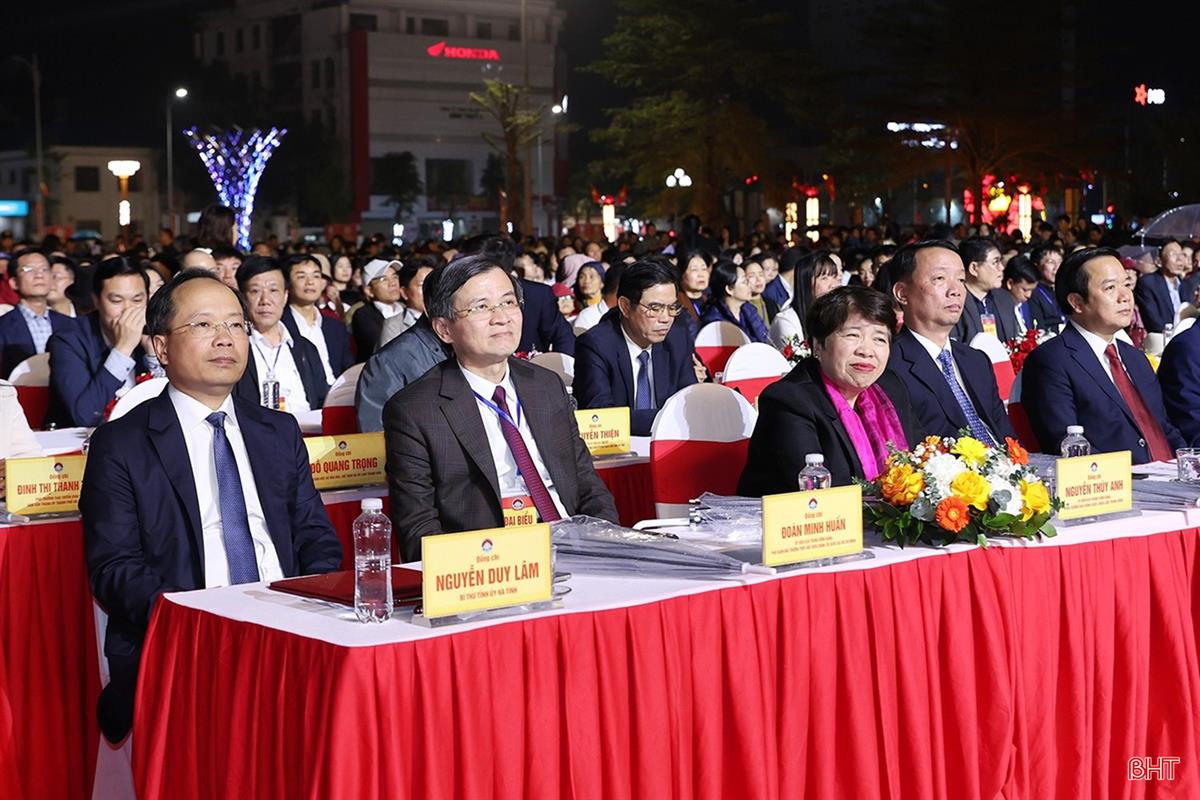 Về phía tỉnh Hà Tĩnh có đồng chí Nguyễn Duy Lâm, Bí thư Tỉnh ủy; đồng chí Nguyễn Hồng Lĩnh, Phó Bí thư Thường trực Tỉnh ủy, Chủ tịch HĐND tỉnh; đồng chí Phan Thiên Định, Phó Bí thư Tỉnh ủy, Chủ tịch UBND tỉnh; các đồng chí Ủy viên Ban Thường vụ Tỉnh ủy, Thường trực HĐND, UBND, UBMTTQ tỉnh; các đồng chí nguyên lãnh đạo tỉnh qua các thời kỳ; lãnh đạo các sở, ban, ngành, địa phương; đại diện dòng họ Nguyễn Tiên Điền, các doanh nghiệp, nhà đầu tư và đông đảo bà con nhân dân tỉnh nhà.