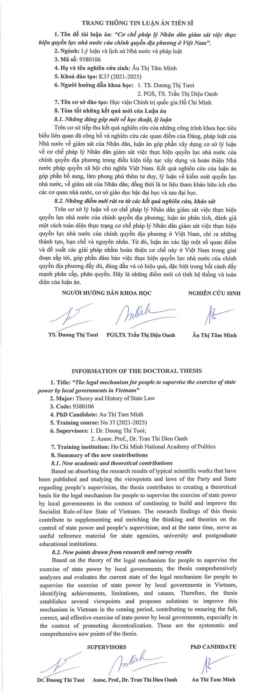 Nghiên cứu sinh Âu Thị Tâm Minh tóm tắt những kết luận mới của luận án