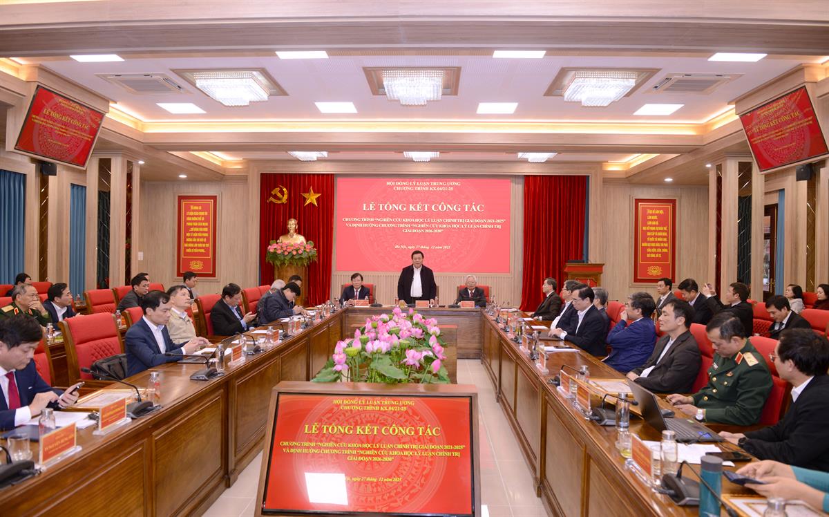 Chiều ngày 27/12/2025, Hội đồng Lý luận Trung ương tổ chức Tổng kết Chương trình “Nghiên cứu khoa học lý luận chính trị giai đoạn 2021-2025" (KX.04/21-25) và định hướng Chương trình “Nghiên cứu khoa học lý luận chính trị giai đoạn 2026-2030”. GS,TS Nguyễn Xuân Thắng, Ủy viên Bộ Chính trị, Giám đốc Học viện Chính trị quốc gia Hồ Chí Minh, Chủ tịch Hội đồng Lý luận Trung ương, Chủ nhiệm Chương trình KX.04/21-25 chủ trì hội nghị.