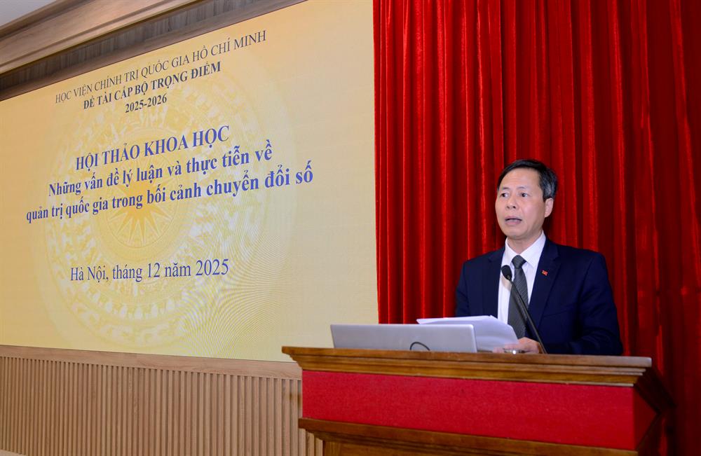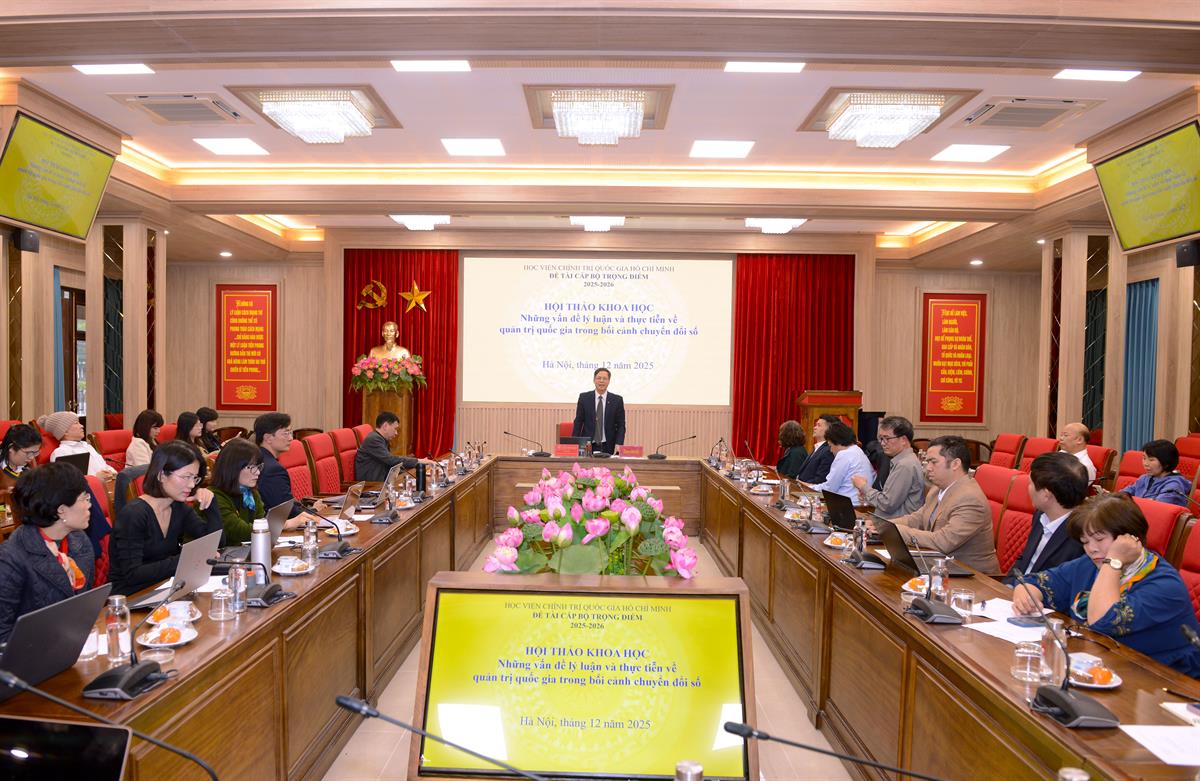 Ngày 29/12/2025, Viện Lãnh đạo và Hành chính công thuộc Học viện Chính trị quốc gia Hồ Chí Minh chủ trì tổ chức hội thảo khoa học “Những vấn đề lý luận và thực tiễn về quản trị quốc gia trong bối cảnh chuyển đổi số”. PGS,TS Lê Văn Chiến, Viện trưởng Viện Lãnh đạo học và Hành chính công chủ trì hội thảo.