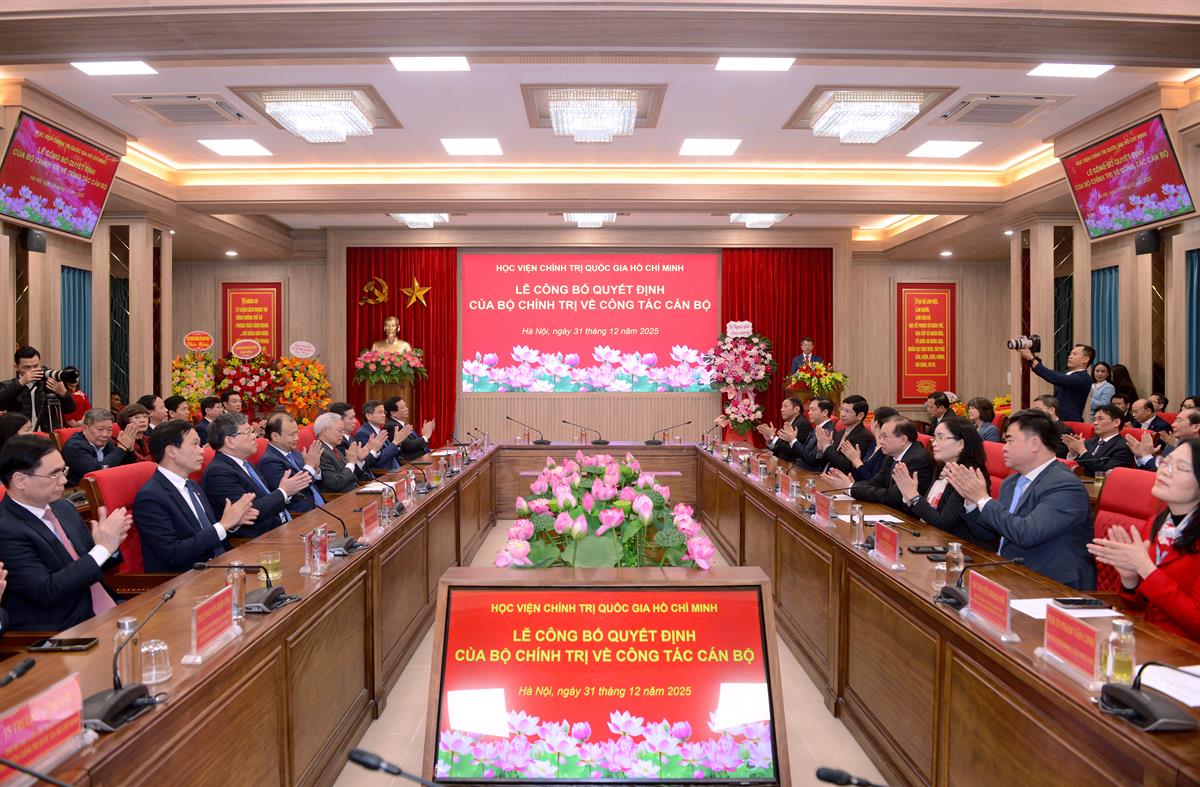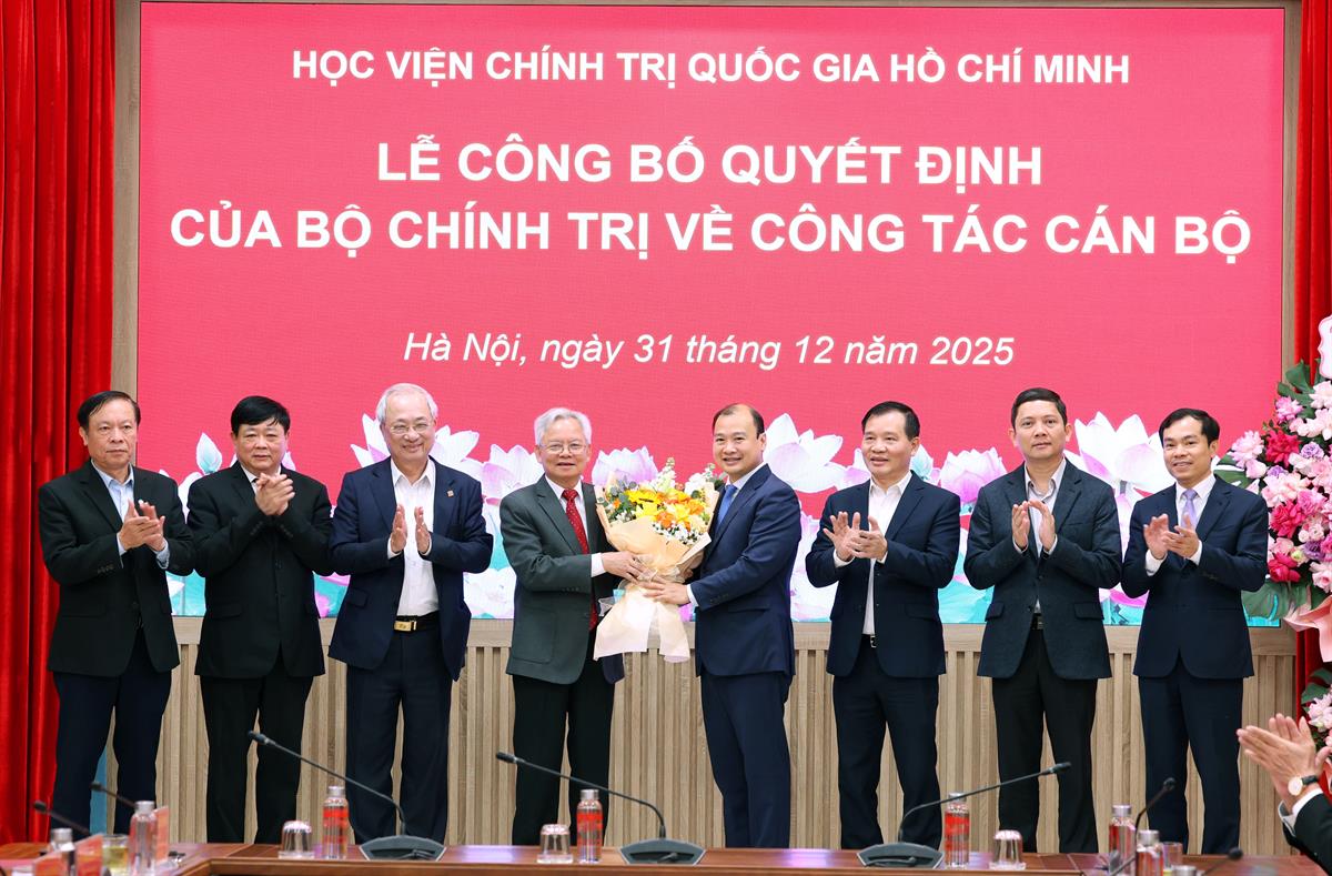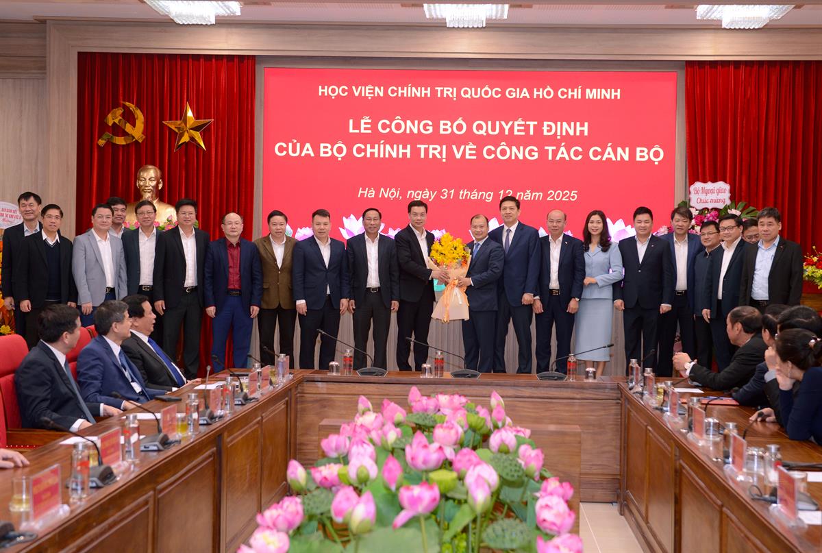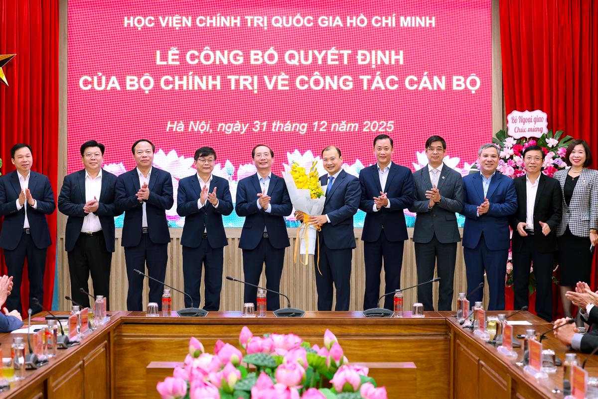 Sáng ngày 31/12/2025, Học viện Chính trị quốc gia Hồ Chí Minh trang trọng tổ chức Lễ công bố quyết định bổ nhiệm chức danh Phó Giám đốc Học viện Chính trị quốc gia Hồ Chí Minh. GS,TS Nguyễn Xuân Thắng, Ủy viên Bộ Chính trị, Giám đốc Học viện Chính trị quốc gia Hồ Chí Minh, Chủ tịch Hội đồng Lý luận Trung ương dự và chủ trì buổi lễ.