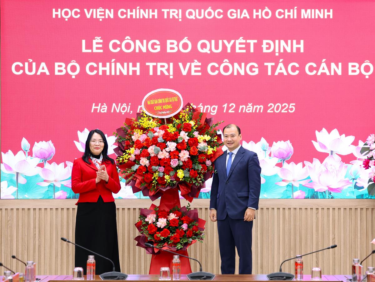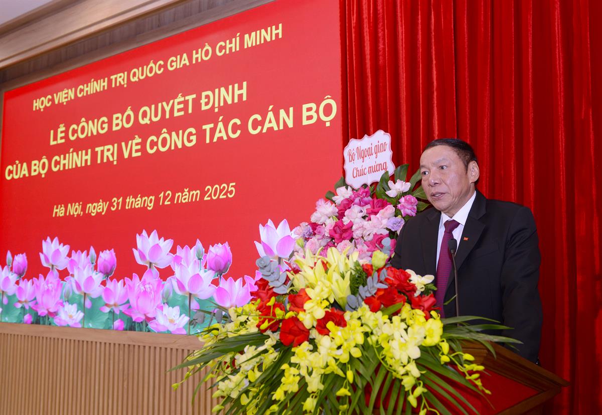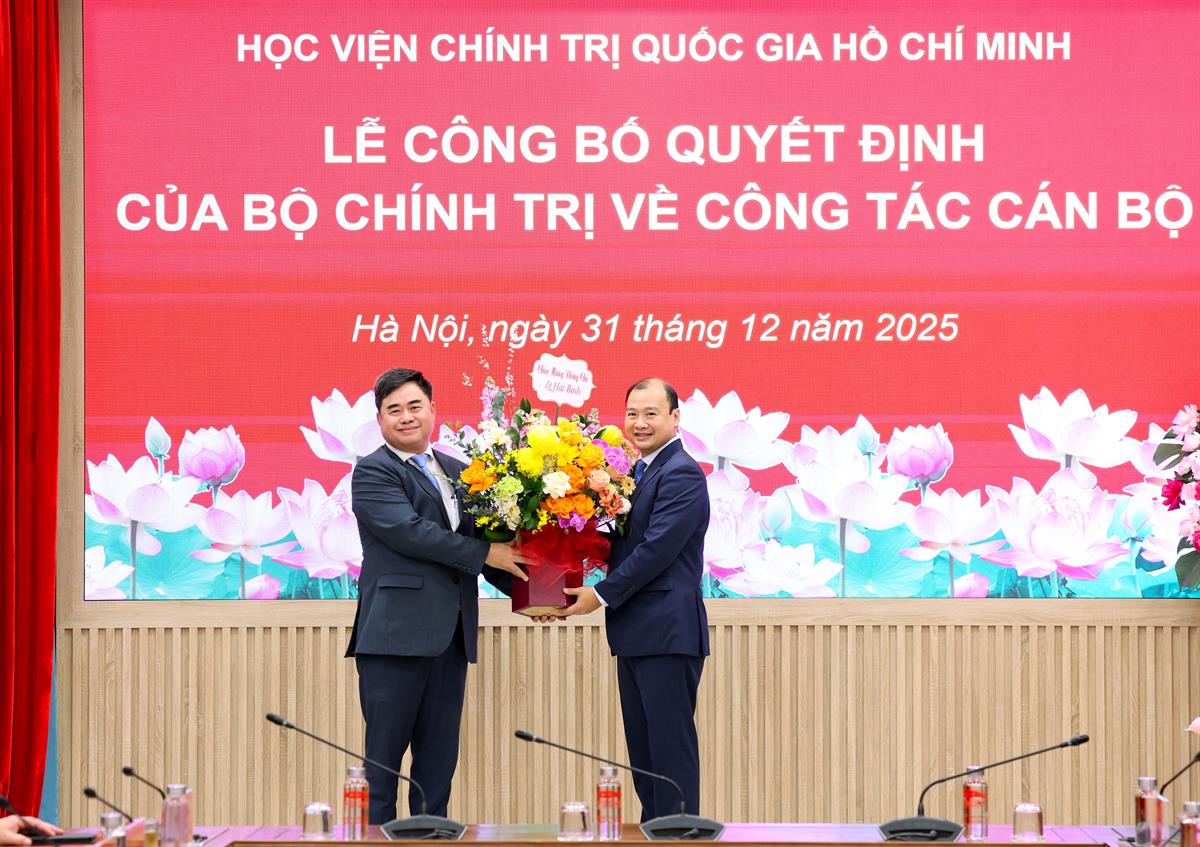 Sáng ngày 31/12/2025, Học viện Chính trị quốc gia Hồ Chí Minh trang trọng tổ chức Lễ công bố quyết định bổ nhiệm chức danh Phó Giám đốc Học viện Chính trị quốc gia Hồ Chí Minh. GS,TS Nguyễn Xuân Thắng, Ủy viên Bộ Chính trị, Giám đốc Học viện Chính trị quốc gia Hồ Chí Minh, Chủ tịch Hội đồng Lý luận Trung ương dự và chủ trì buổi lễ.