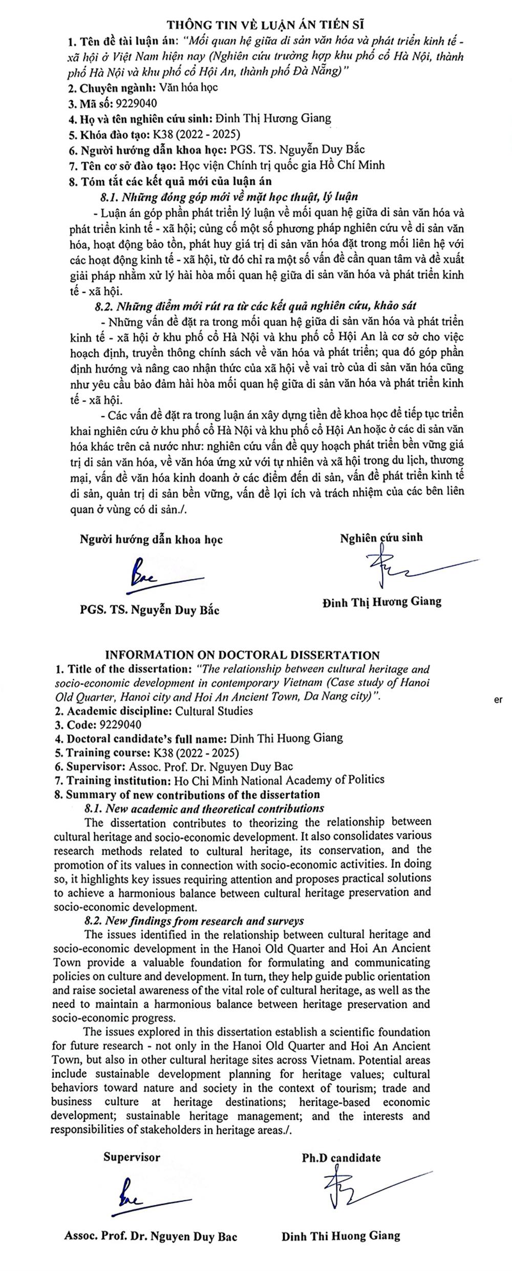Luận án và tóm tắt luận án của Nghiên cứu sinh Hoàng Thị Thuý sau bảo vệ cấp Học viện