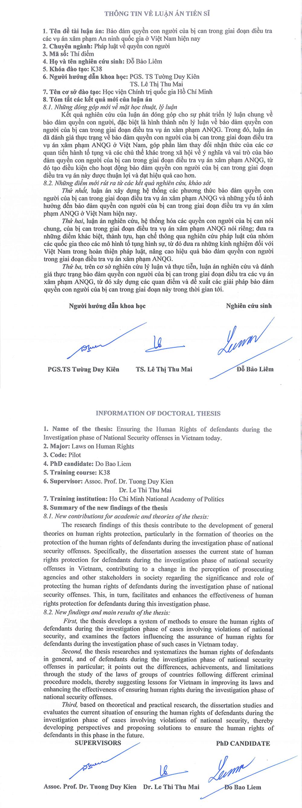 Nghiên cứu sinh Đỗ Bảo Liêm tóm tắt những kết luận mới của luận án