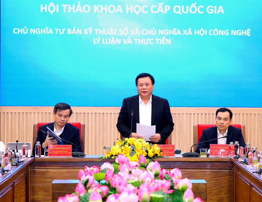 Phát biểu đề dẫn Hội thảo, GS,TS Nguyễn Xuân Thắng, Uỷ viên Bộ Chính trị, Giám đốc Học viện Chính trị quốc gia Hồ Chí Minh, Chủ tịch Hội đồng Lý luận Trung ương cho biết, cuộc cách mạng khoa học, công nghệ hiện đại, với hạt nhân là công nghệ số, dữ liệu lớn, trí tuệ nhân tạo, Internet vạn vật, tự động hóa thông minh và công nghệ siêu lượng tử, đang làm biến đổi căn bản chất lượng mới của lực lượng sản xuất, phương thức tổ chức sản xuất và phân phối, làm thay đổi toàn diện cấu trúc quyền lực kinh tế – xã hội trên phạm vi toàn cầu. Trong bối cảnh đó, cả chủ nghĩa tư bản và chủ nghĩa xã hội đều buộc phải vận động, điều chỉnh và tái cấu trúc để thích ứng với một trình độ và chất lượng phát triển mới của lực lượng sản xuất. Sự vận động đó đã hình thành hai mô hình nổi bật được giới nghiên cứu tại nhiều nước quan tâm là chủ nghĩa tư bản kỹ thuật số và chủ nghĩa xã hội công nghệ.