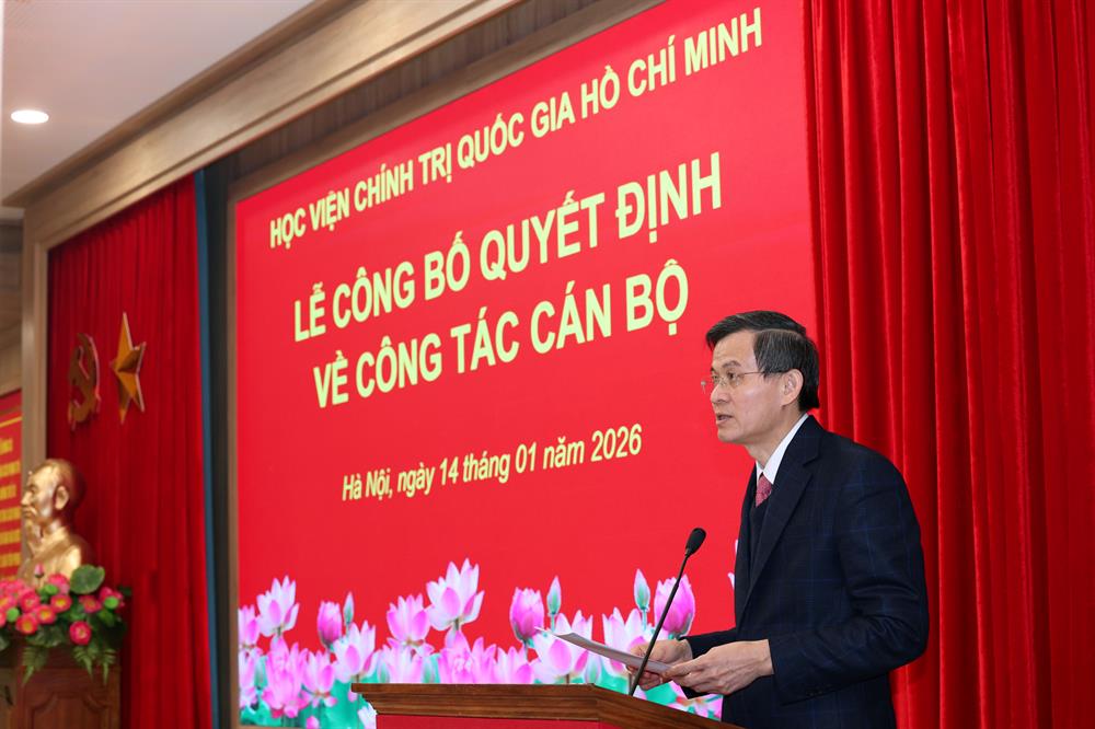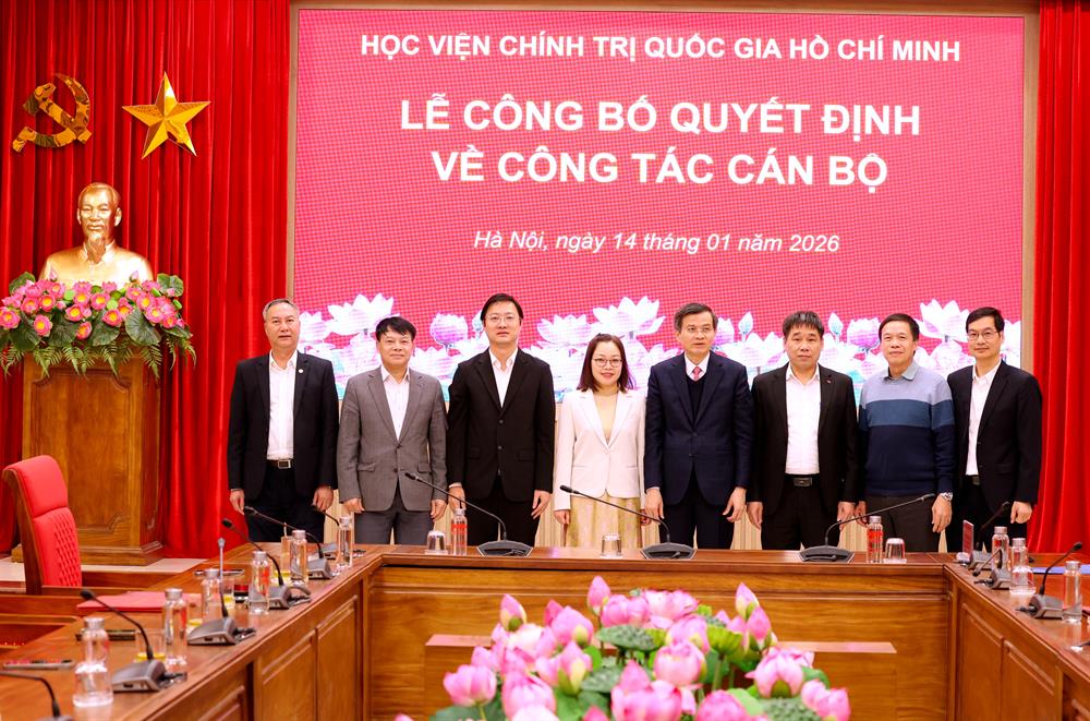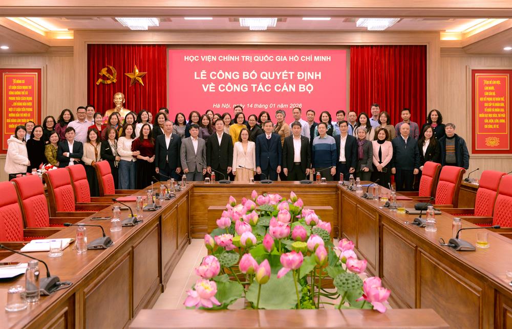 Chiều ngày 14/01/2026, tại Hà Nội, Học viện Chính trị quốc gia Hồ Chí Minh tổ chức Lễ công bố quyết định bổ nhiệm lại chức danh Phó Vụ trưởng Vụ Quản lý đào tạo, bồi dưỡng. PGS,TS Đoàn Minh Huấn, Ủy viên Trung ương Đảng, Phó Giám đốc thường trực Học viện Chính trị quốc gia Hồ Chí Minh dự và chủ trì buổi lễ.