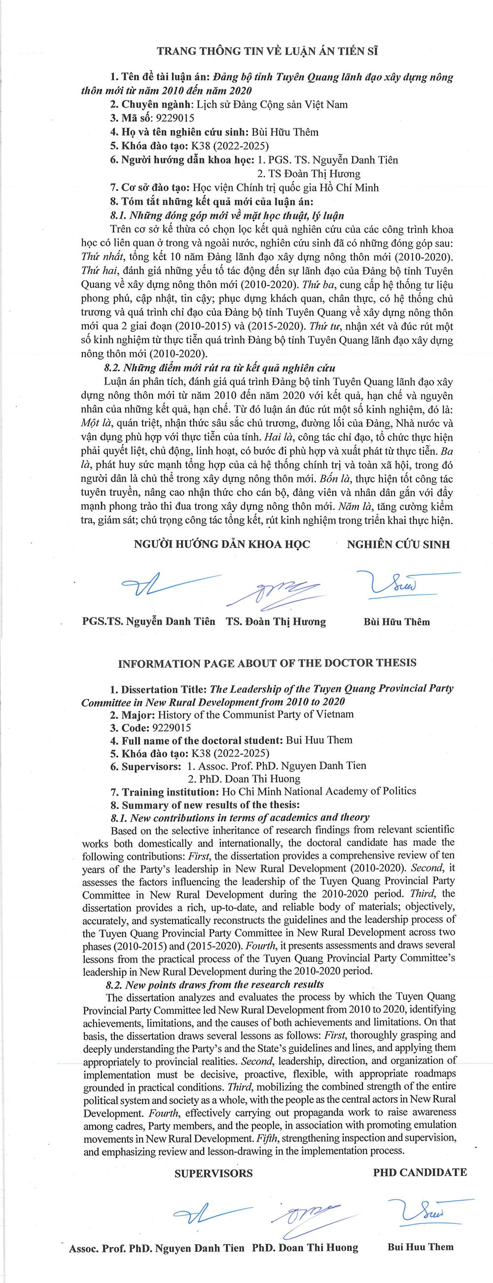 Nghiên cứu sinh Bùi Hữu Thêm tóm tắt những kết luận mới của luận án