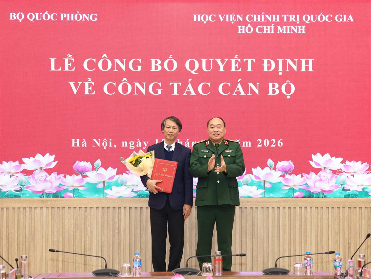 Chiều ngày 14/01/2026, tại Hà Nội, Học viện Chính trị quốc gia Hồ Chí Minh tổ chức Lễ công bố quyết định bổ nhiệm lại chức danh Phó Vụ trưởng Vụ Quản lý đào tạo, bồi dưỡng. PGS,TS Đoàn Minh Huấn, Ủy viên Trung ương Đảng, Phó Giám đốc thường trực Học viện Chính trị quốc gia Hồ Chí Minh dự và chủ trì buổi lễ.