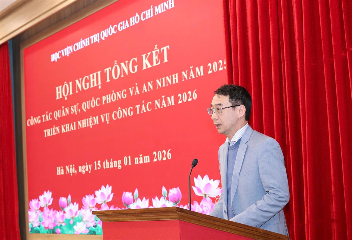 Trình bày báo cáo tổng kết công tác quốc phòng và an ninh của Học viện Chính trị quốc gia Hồ Chí Minh, PGS,TS Lâm Quốc Tuấn, Viện trưởng Viện Xây dựng Đảng, Uỷ viên Hội đồng Giáo dục Quốc phòng an ninh Học viện, Chính trị viên Ban Chỉ huy quân sự Trung tâm Học viện cho biết, năm 2025 - năm diễn ra nhiều sự kiện của đất nước, dưới sự quan tâm chỉ đạo sát sao, quyết liệt của Đảng ủy, Ban Giám đốc Học viện, Ban Chỉ huy quân sự Học viện đã tham mưu triển khai hiệu quả nhiều hoạt động nhằm bảo đảm công tác quốc phòng, an ninh trong toàn hệ thống và đạt được nhiều kết quả nổi bật.