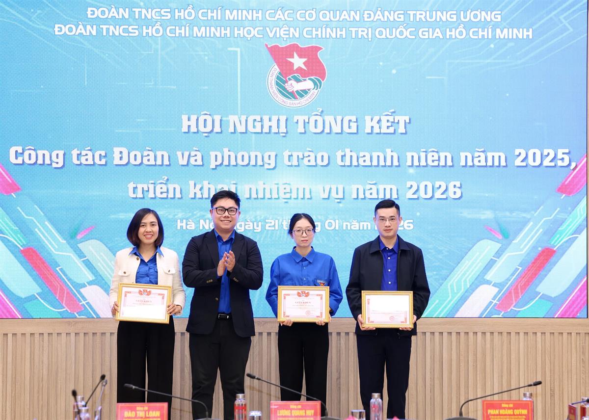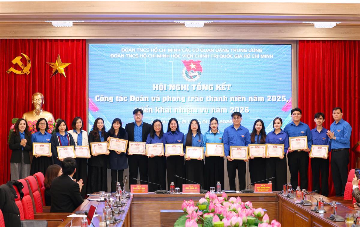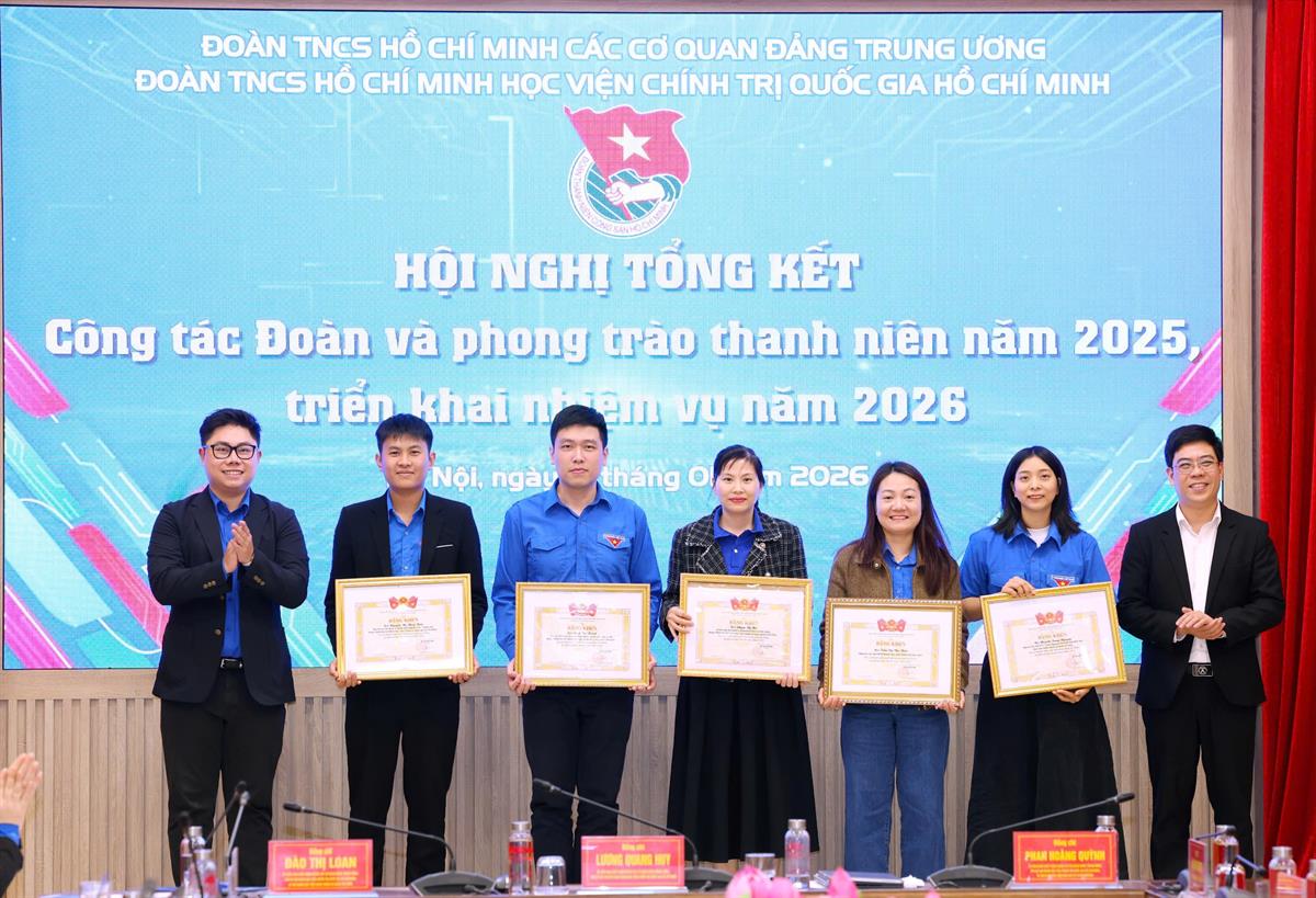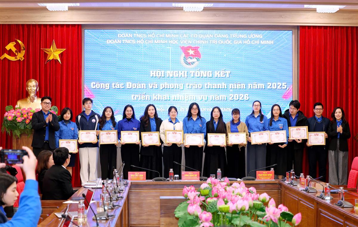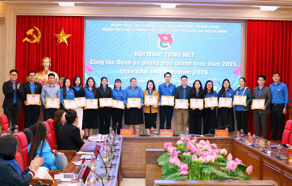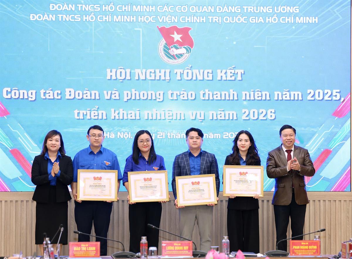 Với những kết quả đạt được, tại Hội nghị, 06 tập thể và 19 cá nhân đã được tặng Bằng khen của Ban Chấp hành Đoàn các cơ quan Đảng Trung ương vì đã có thành tích xuất sắc trong công tác đoàn và phong trào thanh niên năm 2025; 04 tập thể và 64 cá nhân đã được tặng Giấy khen của Ban Chấp hành Đoàn Thanh niên Học viện Chính trị quốc gia Hồ Chí Minh vì có thành tích xuất sắc trong công tác Đoàn và phong trào thanh niên năm 2025; 03 tập thể và 36 cá nhân đã được tặng Giấy khen của Ban Chấp hành Đoàn Thanh niên Học viện Chính trị quốc gia Hồ Chí Minh vì có thành tích xuất sắc trong công tác tổ chức Đại hội đại biểu Đoàn Thanh niên Học viện Chính trị quốc gia Hồ Chí Minh lần thứ IV, nhiệm kỳ 2025-2030.