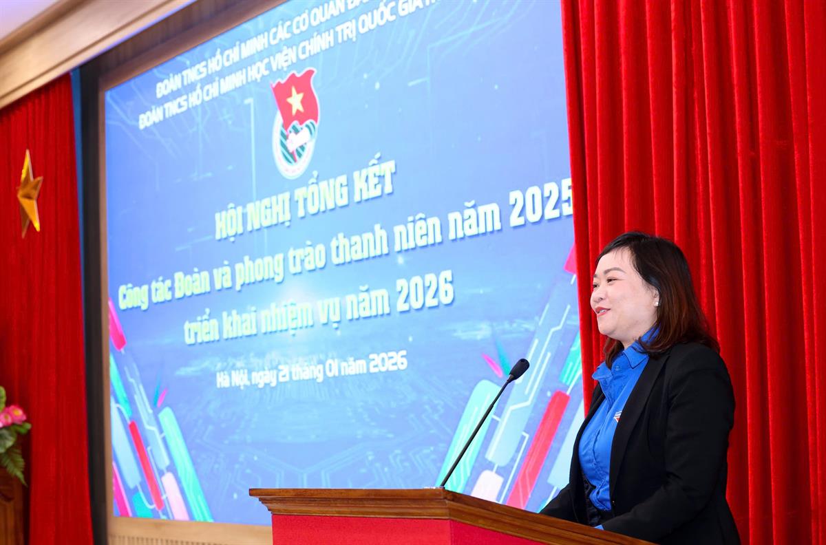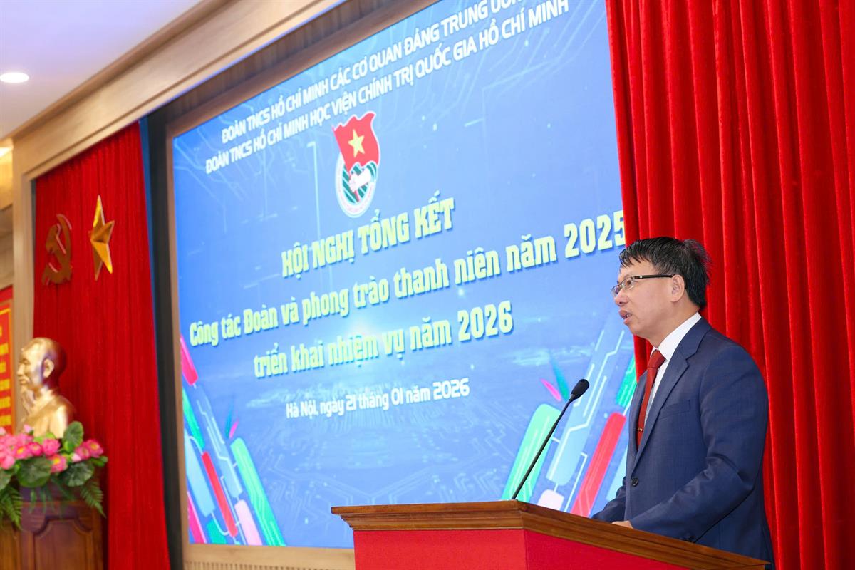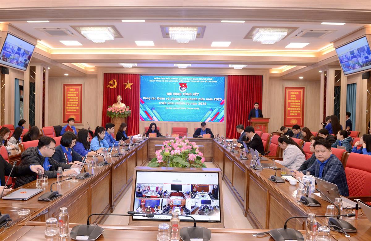Sáng ngày 21/01/2026, tại Hà Nội, Đoàn TNCS Hồ Chí Minh Học viện Chính trị quốc gia Hồ Chí Minh (Đoàn Học viện Chính trị quốc gia Hồ Chí Minh) tổ chức Hội nghị tổng kết công tác Đoàn và phong trào thanh niên năm 2025, triển khai nhiệm vụ năm 2026 bằng hình thức trực tiếp kết hợp với trực tuyến.