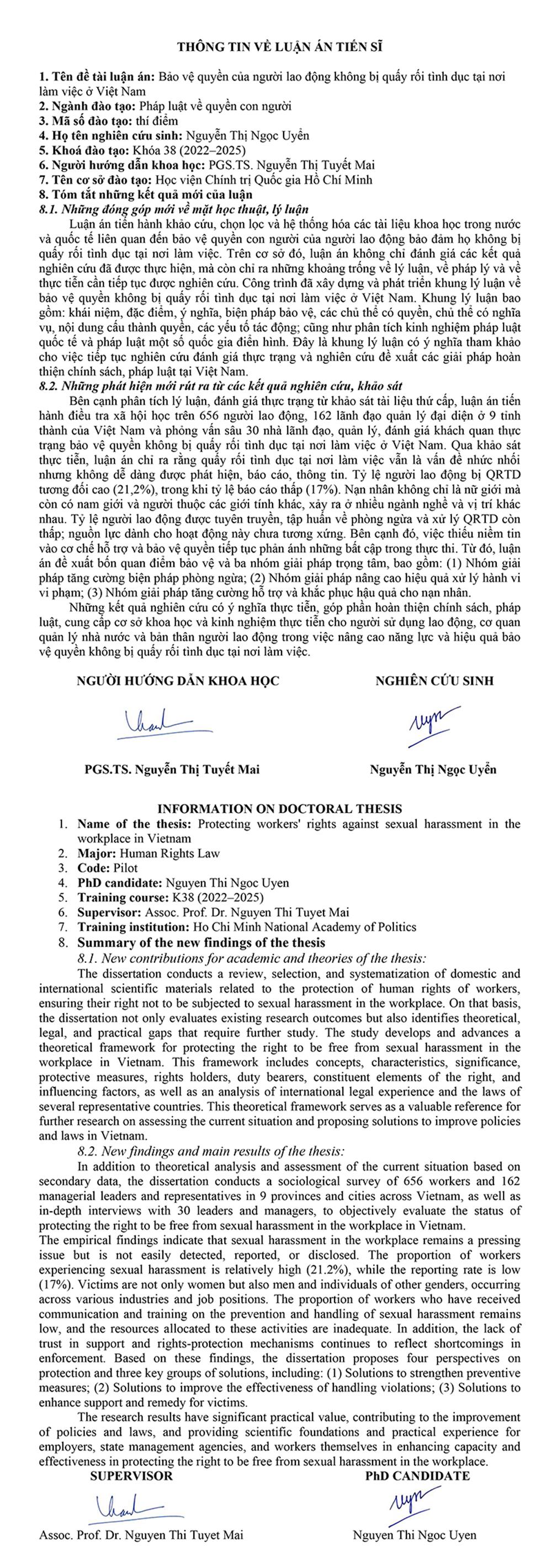 Nghiên cứu sinh Nguyễn Thị Ngọc Uyển tóm tắt những kết luận mới của luận án