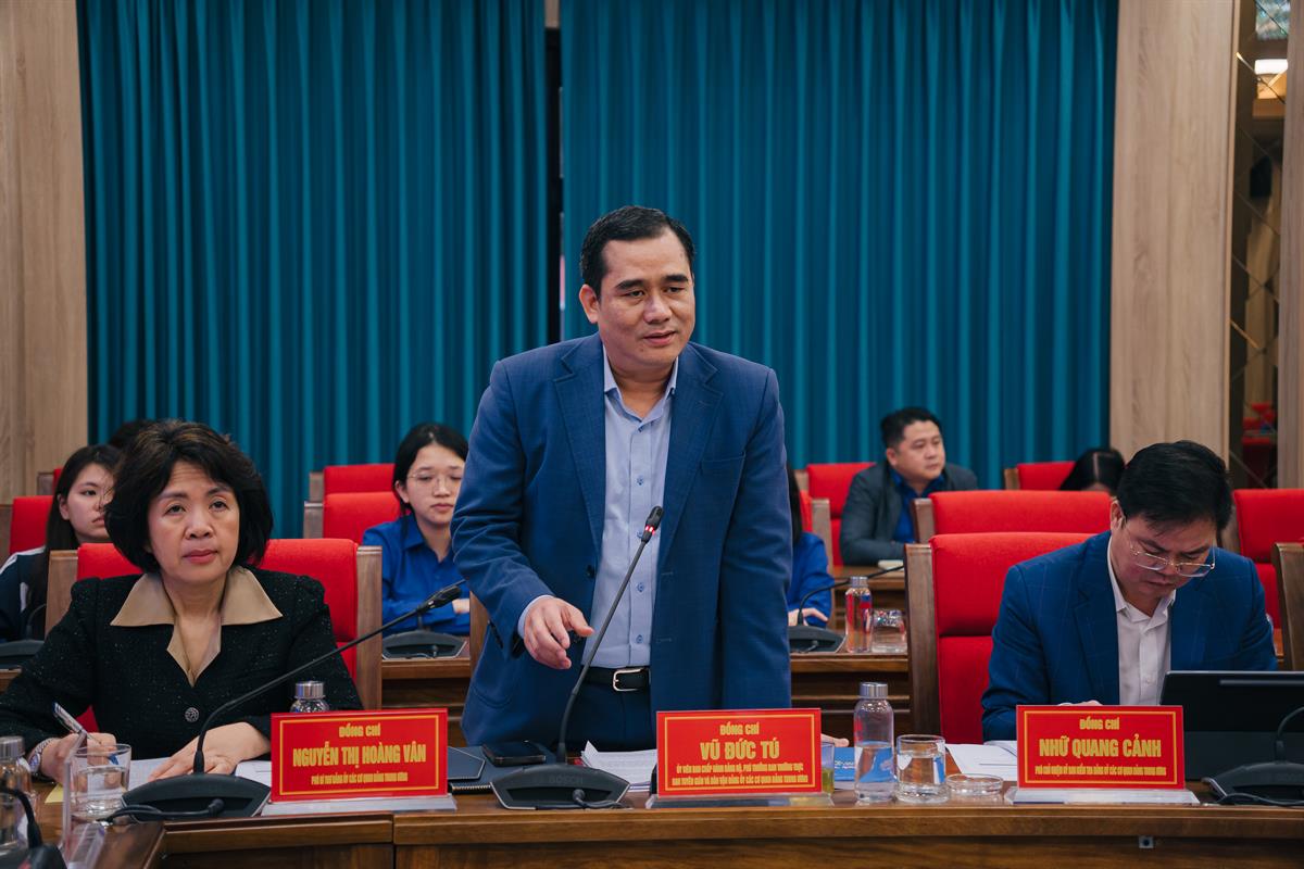 Đồng chí Vũ Đức Tú, Uỷ viên Ban Chấp hành Đảng bộ, Phó Trưởng ban thường trực Ban Tuyên giáo và Dân vận Đảng uỷ các cơ quan Đảng Trung ương tham luận tại Toạ đàm