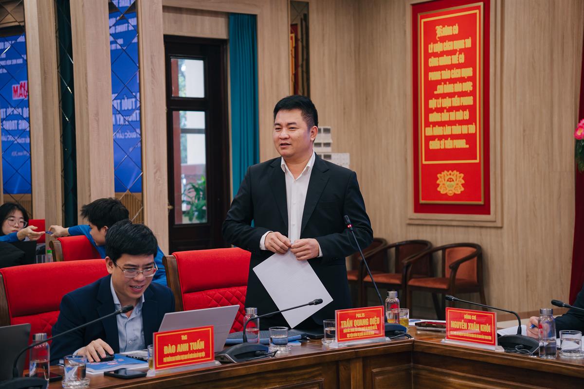 PGS,TS Trần Quang Diệu, Giám đốc Trung tâm Công nghệ và Chuyển đổi số, Học viện Chính trị quốc gia Hồ Chí Minh tham luận tại Toạ đàm
