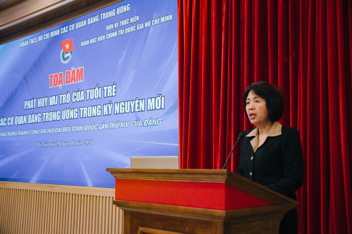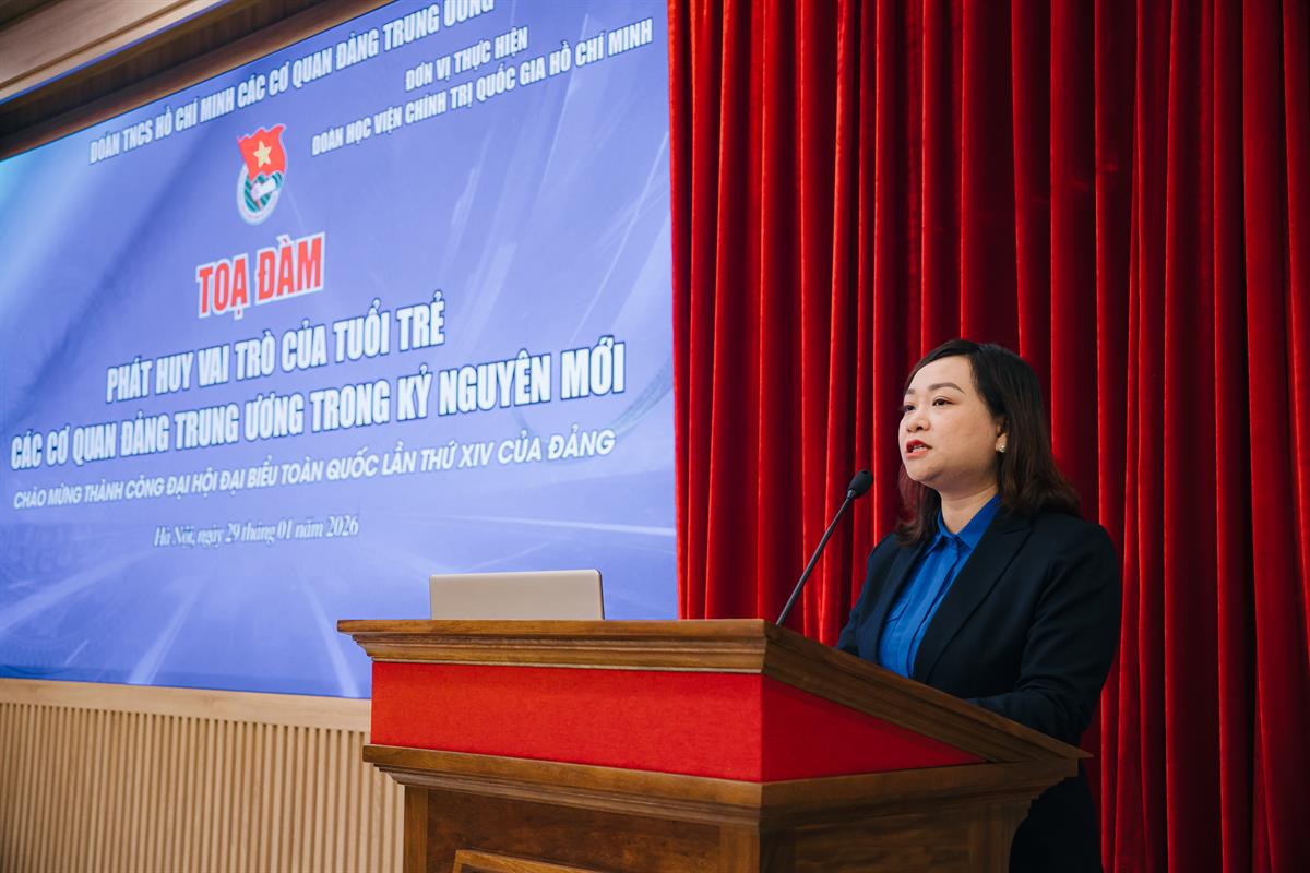 Chào mừng thành công Đại hội đại biểu toàn quốc lần thứ XIV của Đảng, hướng tới kỷ niệm 96 năm thành lập Đảng Cộng sản Việt Nam (03/02/1930-03/02/2026), sáng ngày 29/01/2026, tại Học viện Chính trị quốc gia Hồ Chí Minh, Đoàn TNCS Hồ Chí Minh các cơ quan Đảng Trung ương (Đoàn các cơ quan Đảng Trung ương) tổ chức toạ đàm “Phát huy vai trò của tuổi trẻ các cơ quan Đảng Trung ương trong kỷ nguyên mới”.
