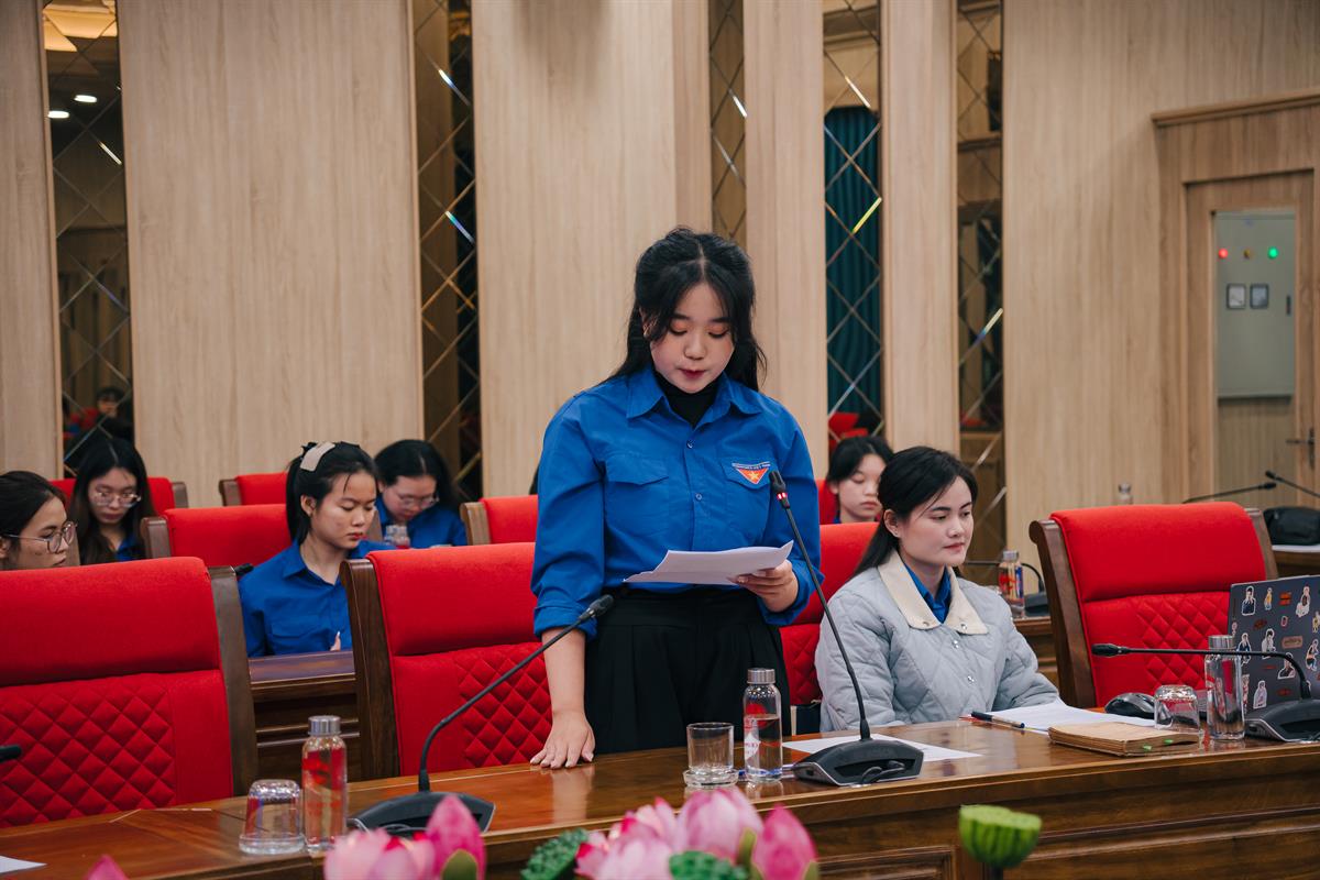 Đồng chí Nguyễn Thị Hoàng Vân cho biết, Đại hội XIV của Đảng đã chỉ rõ bối cảnh phát triển mới của đất nước ta là bối cảnh đan xen giữa thời cơ và thách thức. Cuộc Cách mạng công nghiệp lần thứ tư, chuyển đổi số, hội nhập quốc tế sâu rộng mở ra nhiều cơ hội phát triển, đồng thời đặt ra yêu cầu cao hơn về năng lực tư duy chiến lược, trình độ chuyên môn, phương pháp làm việc hiện đại của đội ngũ cán bộ. Bên cạnh đó, tình hình thế giới và khu vực diễn biến nhanh chóng, phức tạp; các thế lực thù địch gia tăng hoạt động chống phá, nhất là trên không gian mạng, tác động trực tiếp đến nền tảng tư tưởng của Đảng. Đại hội XIV nhấn mạnh yêu cầu tiếp tục đổi mới mạnh mẽ tư duy, nâng cao năng lực lãnh đạo, cầm quyền của Đảng; xây dựng đội ngũ cán bộ các cấp, đặc biệt là cán bộ trẻ, có bản lĩnh chính trị vững vàng, phẩm chất đạo đức trong sáng, tư duy đổi mới, năng lực chuyên môn cao và khát vọng cống hiến vì sự nghiệp chung. Đối với tuổi trẻ các cơ quan Đảng Trung ương, yêu cầu này càng rõ nét và cấp thiết hơn. Mỗi đoàn viên, thanh niên không chỉ hoàn thành tốt nhiệm vụ được giao, mà còn phải không ngừng nâng cao chất lượng tham mưu, tư duy chiều sâu, tầm nhìn dài hạn; từng bước khẳng định vai trò của mình trong công tác nghiên cứu, tổng hợp, tham mưu chiến lược.