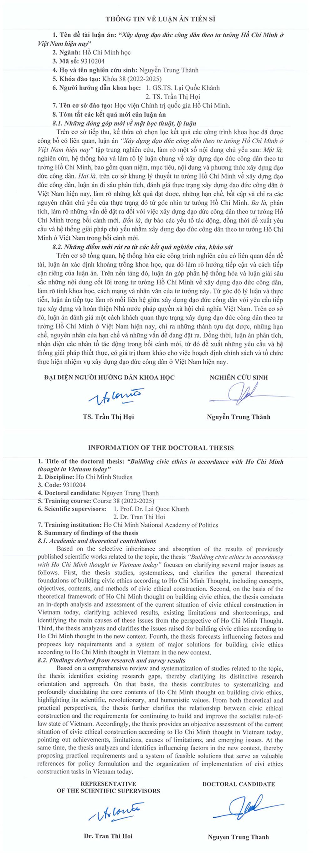 Luận án và tóm tắt luận án của Nghiên cứu sinh Nguyễn Văn Phương sau bảo vệ cấp Học viện