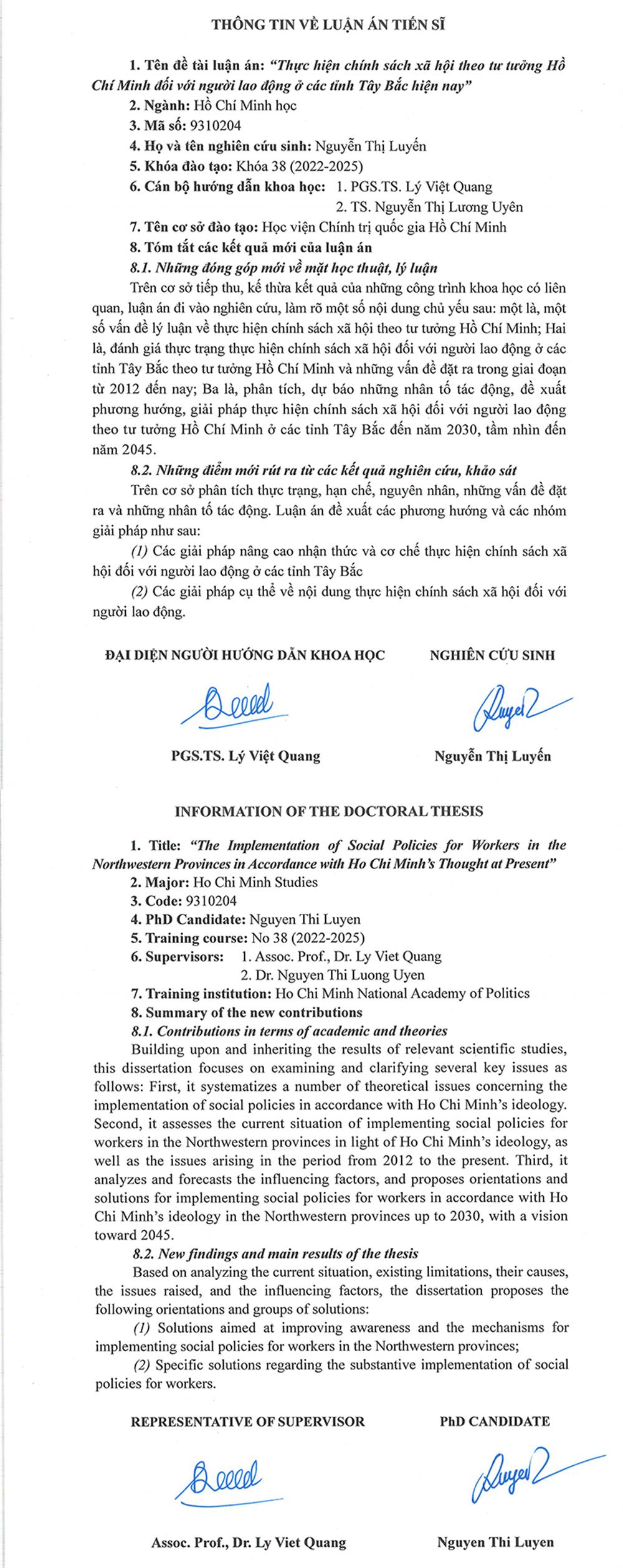Luận án và tóm tắt luận án của Nghiên cứu sinh Nguyễn Văn Phương sau bảo vệ cấp Học viện