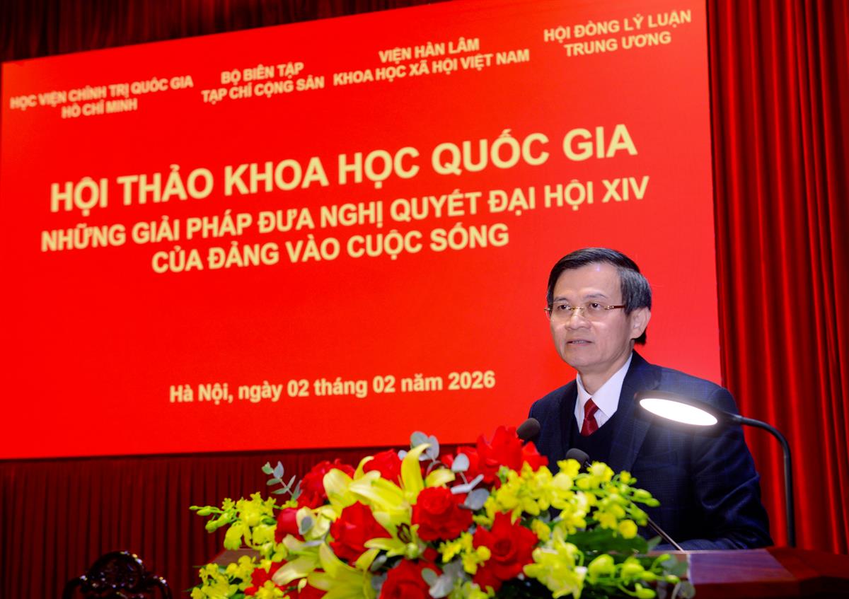 Nhấn mạnh bối cảnh, ý nghĩa hội thảo, GS,TS Nguyễn Xuân Thắng cho rằng hội thảo chính là biểu hiện sinh động, thiết thực nhất của tinh thần chỉ đạo của đồng chí Tổng Bí thư Tô Lâm đã khẳng định tại phiên bế mạc Đại hội XIV, thể hiện sự chuyển biến nhanh chóng, quyết liệt từ nhận thức lý luận sang hành động thực tiễn, từ nghị quyết của Đảng sang cuộc sống cụ thể của nhân dân. Và, việc bốn cơ quan lý luận lớn nhất phối hợp tổ chức hội thảo ngay sau Đại hội chỉ vài ngày đã gửi đi thông điệp mạnh mẽ: các cơ quan này không chỉ dừng lại ở nghiên cứu, lý luận mà còn chủ động, tích cực tham gia vào quá trình chuyển hóa nghị quyết thành hành động cụ thể, góp phần thực hiện thắng lợi các mục tiêu chiến lược mà Đại hội đã đề ra, hướng tới hai mốc son lịch sử 100 năm của Đảng và dân tộc.