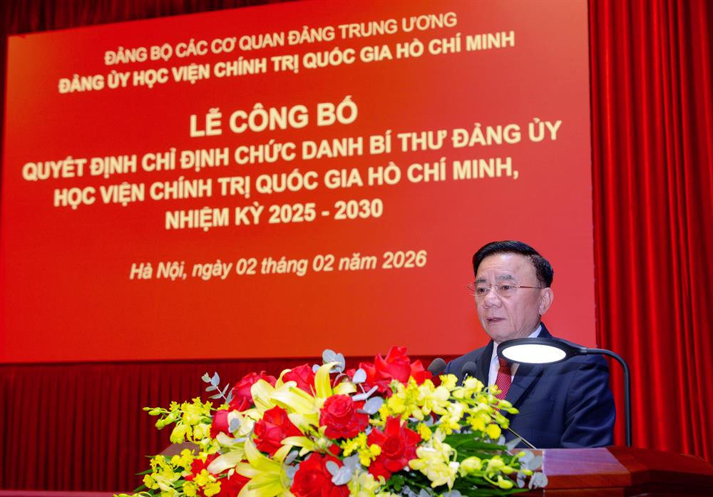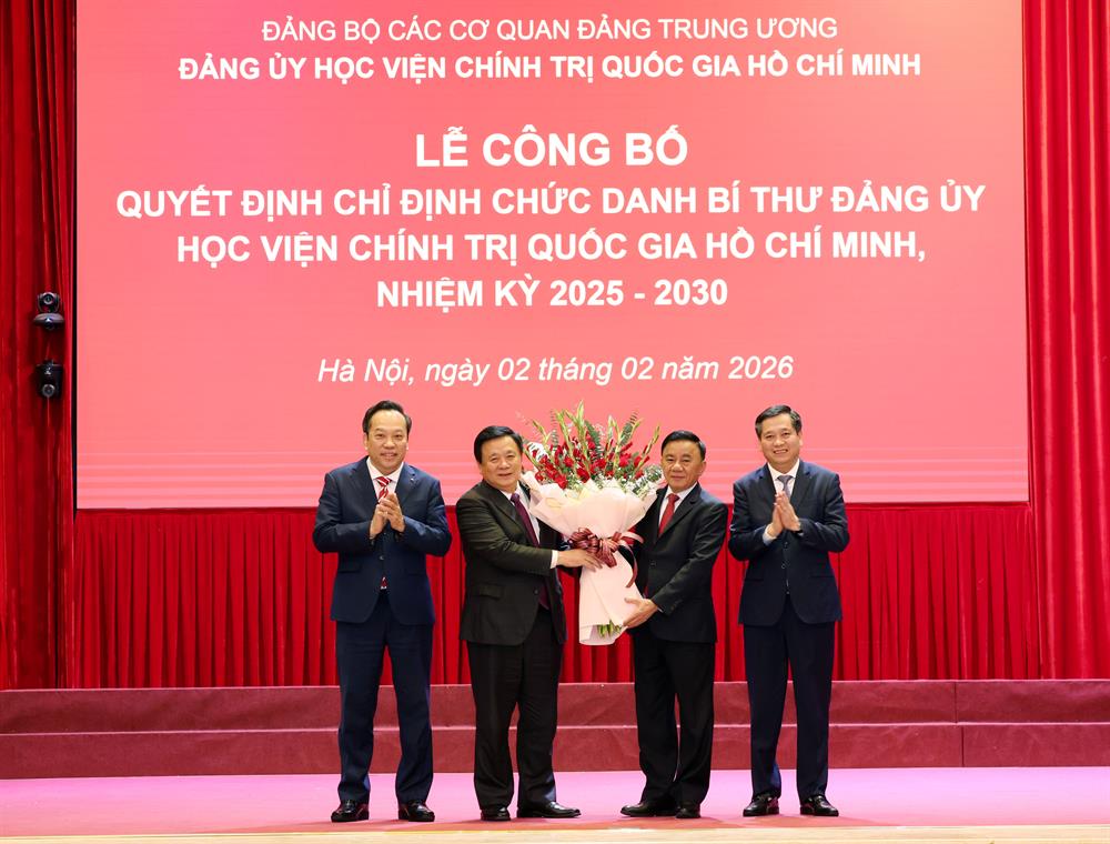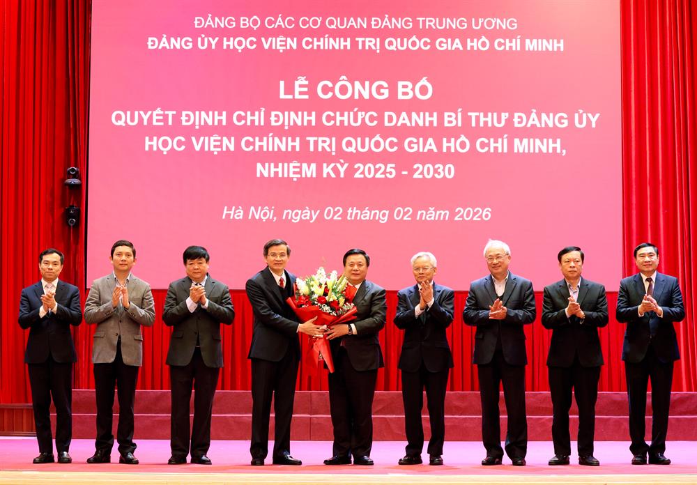 Chiều ngày 02/02/2026, Học viện Chính trị quốc gia Hồ Chí Minh tổ chức Hội nghị thông báo Quyết định của Bộ Chính trị về việc phân công, bổ nhiệm Giám đốc Học viện. Hội nghị được tổ chức theo hình thức trực tiếp kết hợp trực tuyến từ Trung tâm Học viện đến các Học viện trực thuộc II, III, IV.