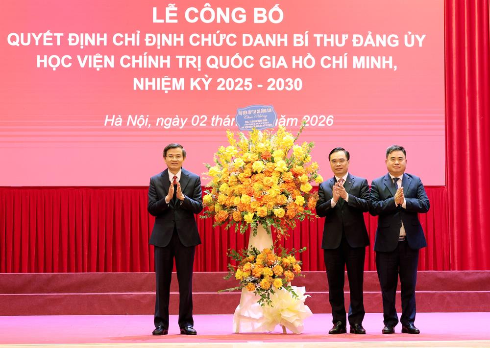 Chiều ngày 02/02/2026, Đảng ủy Học viện Chính trị quốc gia Hồ Chí Minh tổ chức Lễ công bố Quyết định chỉ định chức danh Bí thư Đảng ủy Học viện Chính trị quốc gia Hồ Chí Minh, nhiệm kỳ 2025-2030 bằng hình thức trực tiếp kết hợp trực tuyến từ Trung tâm Học viện đến các Học viện khu vực II,III,IV. Đồng chí Trần Cẩm Tú, Ủy viên Bộ Chính trị, Thường trực Ban Bí thư, Bí thư Đảng ủy các cơ quan Đảng Trung ương dự và chủ trì buổi lễ.