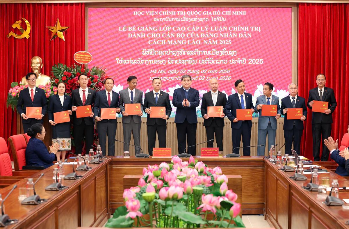 Lớp Cao cấp lý luận chính trị dành cho cán bộ của Đảng Nhân dân Cách mạng Lào năm 2025 được tổ chức trong vòng 05 tháng, với sự tham gia của 45 học viên, bao gồm 10 học viên nữ và 35 học viên nam. Với sự quan tâm, chỉ đạo và tạo điều kiện thuận lợi của Đảng ủy, Ban Giám đốc Học viện, các cơ quan Trung ương, Đại sứ quán Lào tại Việt Nam, các đơn vị chức năng và giảng viên của Học viện Chính trị quốc gia Hồ Chí Minh; cùng sự nỗ lực của học viên trong quá trình học tập, lớp học đã hoàn thành mọi nội dung chương trình theo đúng kế hoạch, mục tiêu đề ra.