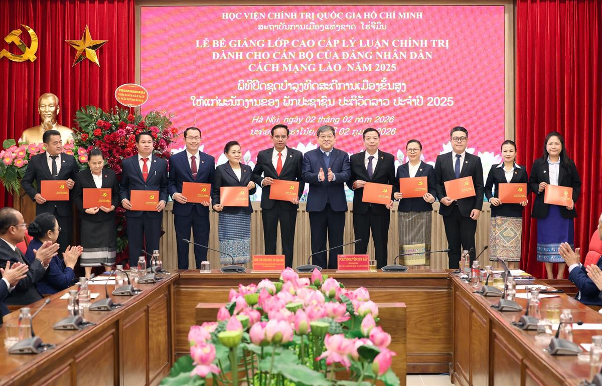 Chiều ngày 02/2/2026, tại Hà Nội, Học viện Chính trị quốc gia Hồ Chí Minh tổ chức Lễ bế giảng Lớp Cao cấp lý luận chính trị dành cho cán bộ của Đảng Nhân dân Cách mạng Lào năm 2025. PGS,TS Nguyễn Duy Bắc, Phó Giám đốc Học viện dự và chủ trì buổi lễ.